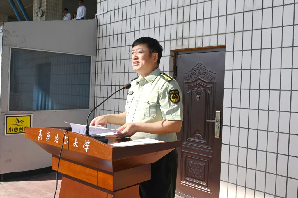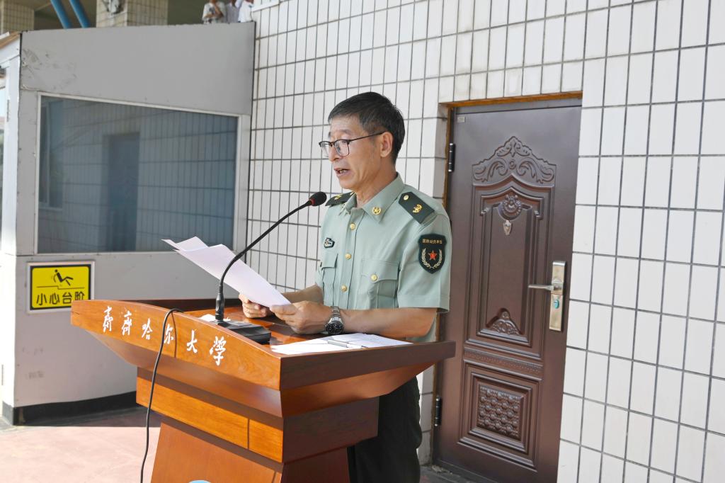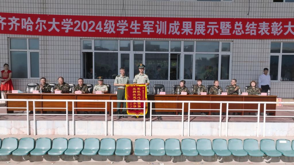 張樹(shù)軍作總結(jié)講話。他代表學(xué)校向?yàn)楸敬诬娪?xùn)付出心血汗水的39名武警教官和40名自訓(xùn)教官表示崇高的敬意,向機(jī)關(guān)、學(xué)院領(lǐng)導(dǎo)、老師和學(xué)生會(huì)同學(xué)背后默默付出表示真摯的感謝,向堅(jiān)持刻苦訓(xùn)練、圓滿完成軍訓(xùn)的2024級(jí)全體同學(xué)表示熱烈的祝賀。張樹(shù)軍指出,同學(xué)們高昂的士氣、整齊的步伐、宏亮的口號(hào)、嚴(yán)整的軍姿,全面展示了高質(zhì)量的軍訓(xùn)成果,充分體現(xiàn)了新時(shí)代齊大學(xué)子的風(fēng)采,以實(shí)際行動(dòng)詮釋了意志堅(jiān)強(qiáng)、團(tuán)結(jié)協(xié)作、服從指揮的優(yōu)秀品質(zhì)。希望同學(xué)們能夠堅(jiān)持軍訓(xùn)期間培養(yǎng)的好思想、好傳統(tǒng)、好作風(fēng),堅(jiān)定理想信念,恪守組織紀(jì)律,練就過(guò)硬本領(lǐng);堅(jiān)持“養(yǎng)正毓德、精存自生”的齊大校訓(xùn),培養(yǎng)“致知、致用、致遠(yuǎn)”的齊大學(xué)風(fēng);牢記黨和國(guó)家的殷切期望,不忘初心,砥礪前行,在努力實(shí)現(xiàn)中華民族偉大復(fù)興的中國(guó)夢(mèng)的過(guò)程中貢獻(xiàn)青春力量,放飛青春夢(mèng)想,實(shí)現(xiàn)青春價(jià)值!