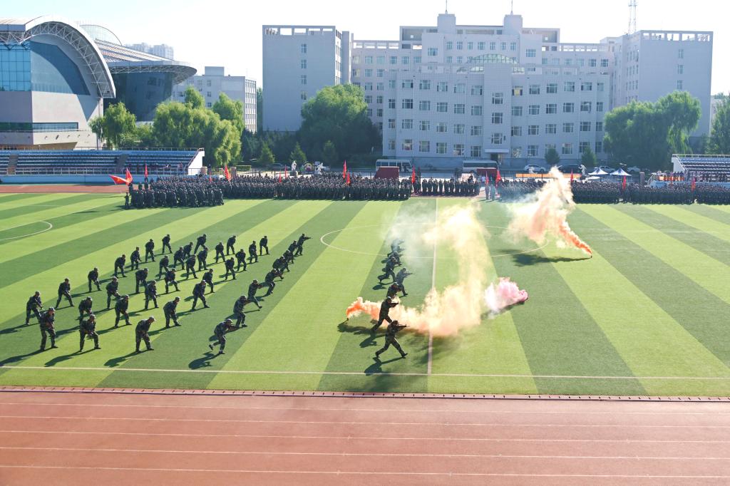 武警齊齊哈爾支隊(duì)的教官們帶來(lái)了精彩的軍事科目匯報(bào)演出,他們精湛的技能、嚴(yán)整的軍容贏得了師生們的陣陣掌聲。