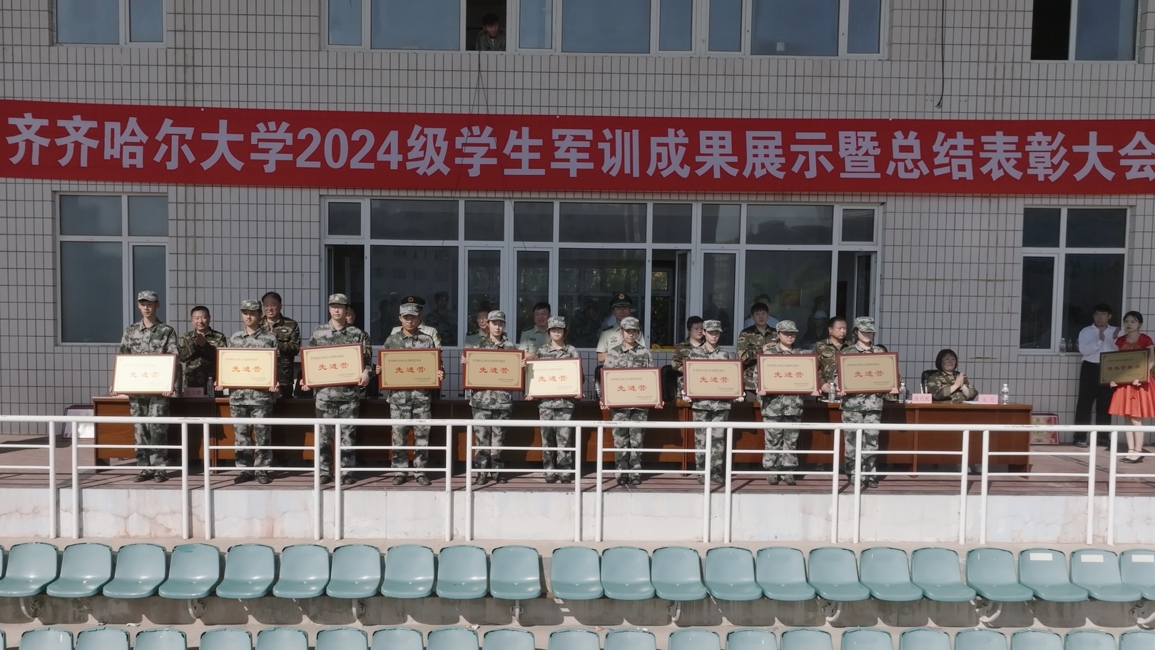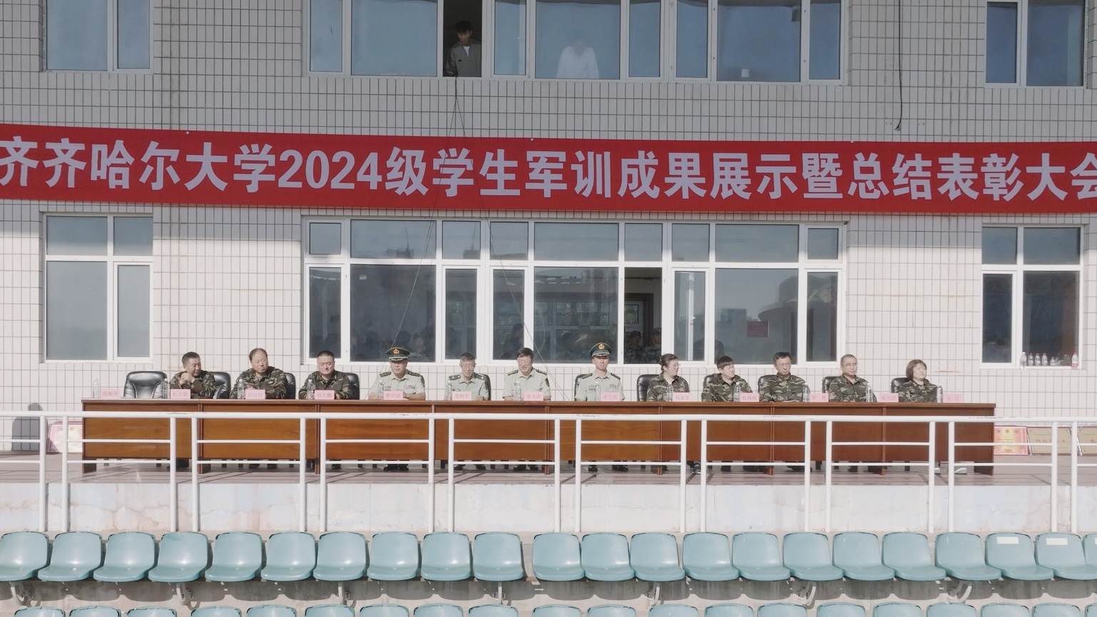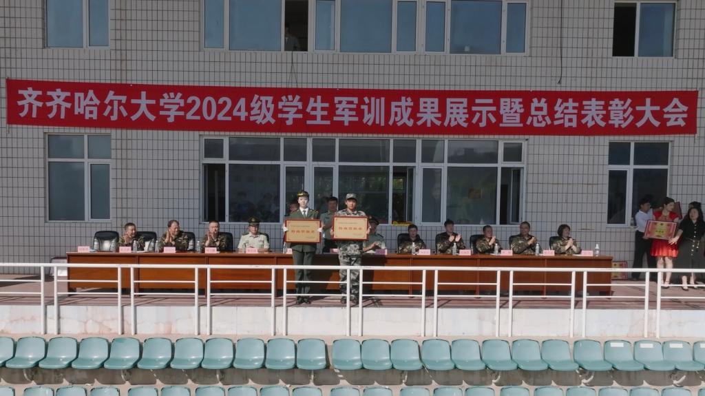 9月8日上午,學(xué)校在西區(qū)體育場(chǎng)舉行了2024級(jí)學(xué)生軍訓(xùn)成果展示暨總結(jié)表彰大會(huì)。校黨委副書(shū)記、軍訓(xùn)團(tuán)政委張文治,副校長(zhǎng)、軍訓(xùn)團(tuán)團(tuán)長(zhǎng)張樹(shù)軍,武警齊齊哈爾支隊(duì)支隊(duì)長(zhǎng)康文波出席,軍訓(xùn)團(tuán)司、政、后各部門(mén)負(fù)責(zé)人,軍訓(xùn)團(tuán)各營(yíng)營(yíng)長(zhǎng)、教導(dǎo)員和全體2024級(jí)新同學(xué)參加大會(huì)。大會(huì)由武裝部部長(zhǎng)、軍訓(xùn)團(tuán)參謀長(zhǎng)趙振華主持。