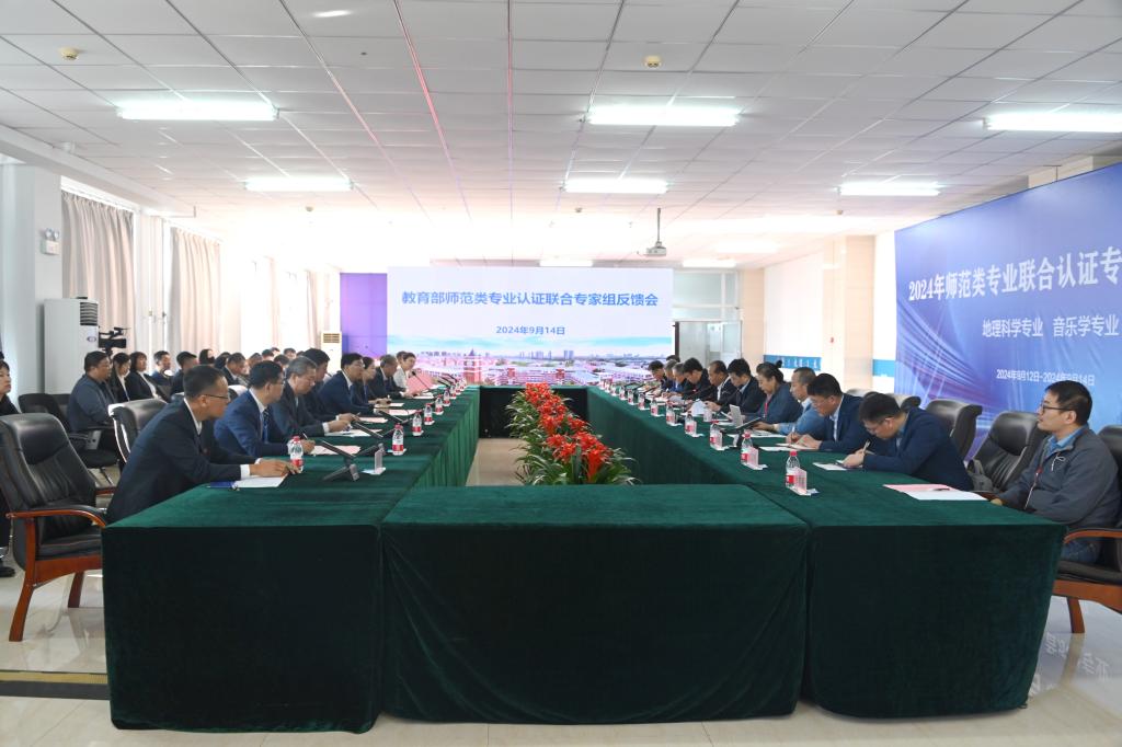 9月14日上午,學(xué)校在東區(qū)圖書館八樓報告廳召開2024年教育部師范類專業(yè)認(rèn)證聯(lián)合專家組意見反饋會。專家組聯(lián)合大組長兼音樂學(xué)專業(yè)認(rèn)證專家組組長李廣平教授、地理科學(xué)專業(yè)認(rèn)證專家組組長張新民教授以及兩個師范類專業(yè)認(rèn)證專家組全體成員,我校領(lǐng)導(dǎo)班子成員出席會議,相關(guān)職能部門及公共課開課學(xué)院負(fù)責(zé)人、參與認(rèn)證專業(yè)所在學(xué)院班子全體成員及參評專業(yè)負(fù)責(zé)人參加會議。會議由李廣平主持。