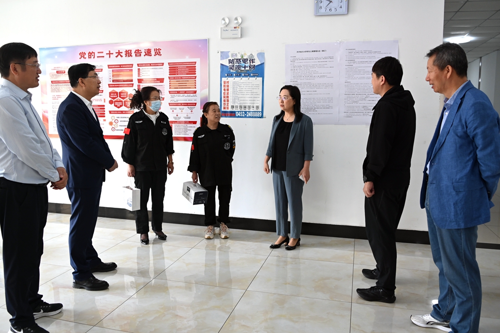 校領(lǐng)導(dǎo)一行先后來到了學(xué)??傊蛋嗍摇⑥k公樓門衛(wèi)室、中區(qū)大門,校體育館南門,西二區(qū)學(xué)生食堂、浴池、學(xué)生宿舍28號(hào)樓,東區(qū)東南門、德潤(rùn)大廈等地,每到一處都詳細(xì)了解中秋節(jié)假日期間相關(guān)崗位的工作和值班情況,對(duì)大家的辛勤付出表示感謝,囑咐大家要關(guān)注天氣變化,注意保重身體,并代表學(xué)校為堅(jiān)守崗位的職工代表們送去了慰問品,希望大家能一如既往地做好節(jié)日期間的保障工作,確保廣大師生度過一個(gè)安定祥和的假期。