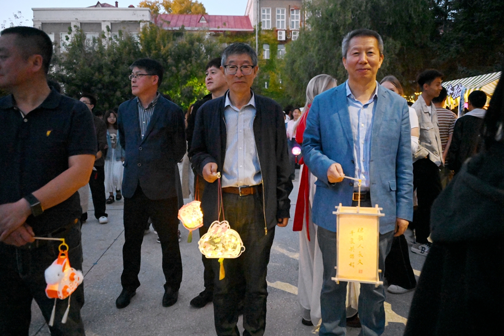 為學(xué)習(xí)宣傳貫徹習(xí)近平文化思想和習(xí)近平總書記在全國教育大會上的重要講話精神,貫徹落實(shí)黨的二十大關(guān)于新時(shí)代文化建設(shè)的決策部署,堅(jiān)持培育和踐行社會主義核心價(jià)值觀,引領(lǐng)廣大青年傳承和弘揚(yáng)中華優(yōu)秀傳統(tǒng)文化,打牢深厚持久的文化自信,助力建設(shè)中國式現(xiàn)代化,9月17日晚,學(xué)校在東區(qū)樹蔭長廊舉辦了花燈華服游園會。校領(lǐng)導(dǎo)丁宏、郝文斌、張文治、叢喜權(quán)、張樹軍及相關(guān)職能部門負(fù)責(zé)人來到游園活動(dòng)現(xiàn)場,與師生共同歡度中秋佳節(jié)。