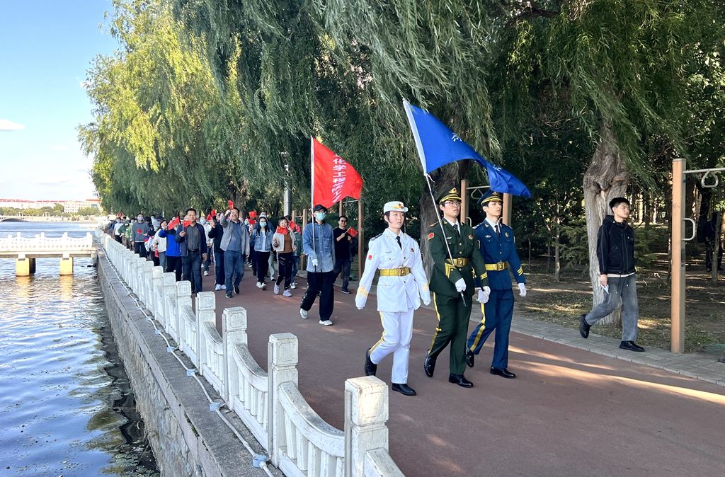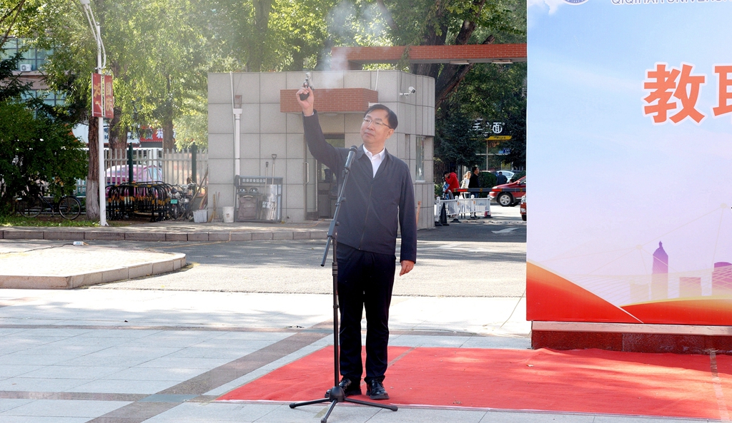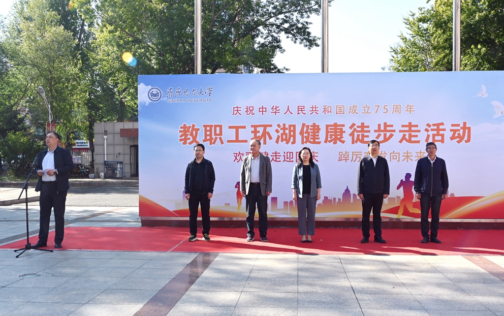 校黨委書記丁宏在致辭時(shí)指出,75年來,在中國共產(chǎn)黨的領(lǐng)導(dǎo)下,全國各族人民團(tuán)結(jié)一心、同舟共濟(jì),戰(zhàn)勝了無數(shù)艱難險(xiǎn)阻,實(shí)現(xiàn)了從站起來、富起來到強(qiáng)起來的歷史性飛躍,中國特色社會(huì)主義進(jìn)入新時(shí)代。有著72年辦學(xué)歷史的齊齊哈爾大學(xué)坐落于勞動(dòng)湖畔,素有“環(huán)湖大學(xué)”的美譽(yù),這一池碧水見證了學(xué)校的發(fā)展和變遷,也為巍巍學(xué)府增添了無限的秀美與靈氣。教職工環(huán)湖健康徒步走是我校傳統(tǒng)特色體育活動(dòng),深受教職工的歡迎。希望廣大教職工在此次健步走活動(dòng)中,欣賞勞動(dòng)湖畔秋日的美景,感受健康運(yùn)動(dòng)帶來的身心愉悅,在集體活動(dòng)中增強(qiáng)凝聚力,在攜手并肩前行中增進(jìn)團(tuán)結(jié),進(jìn)一步激發(fā)愛校榮校、愛崗敬業(yè)、攻堅(jiān)奮進(jìn)的精神動(dòng)力,爭做學(xué)校高質(zhì)量發(fā)展的參與者、推動(dòng)者、宣傳者。