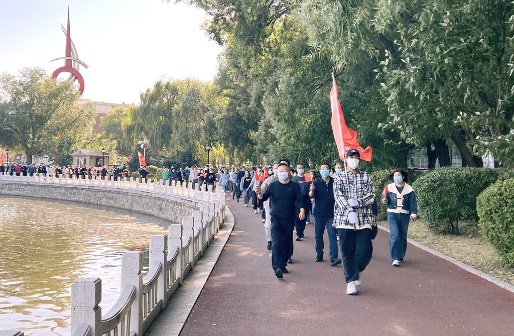 來自全校25個(gè)基層工會(huì)的一千余名會(huì)員代表參加活動(dòng),伴隨著發(fā)令槍聲,各基層工會(huì)依次來到勞動(dòng)湖科技之光廣場列隊(duì)出發(fā)。環(huán)湖甬道上旗幟飄揚(yáng)、人影攢動(dòng)、身姿矯健,大家在沿途的地標(biāo)性建筑前打卡、拍照,齊齊哈爾大學(xué)教職工環(huán)湖健康徒步走活動(dòng)成為秋日勞動(dòng)湖畔一道亮麗的風(fēng)景線。