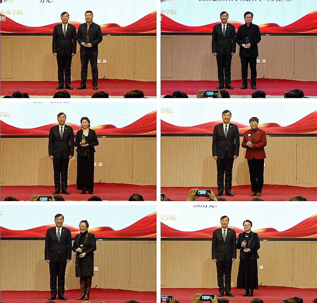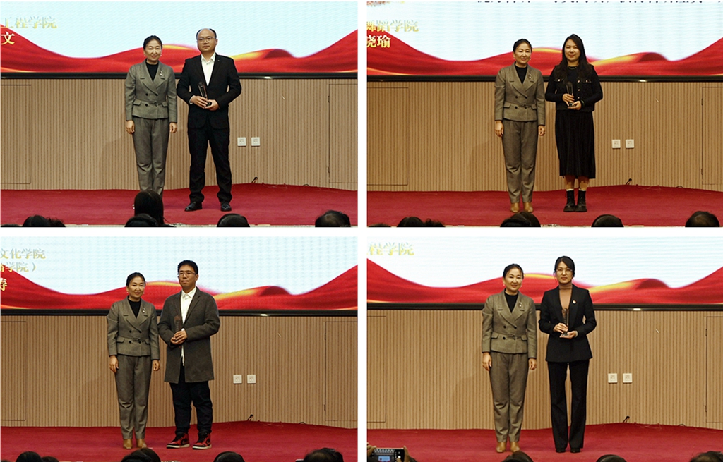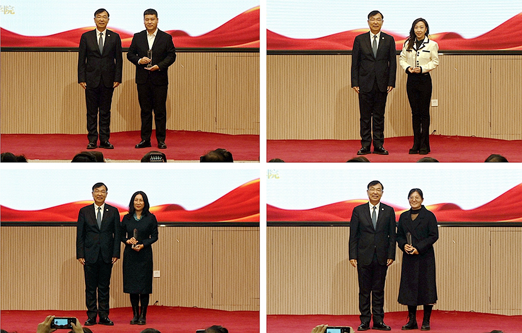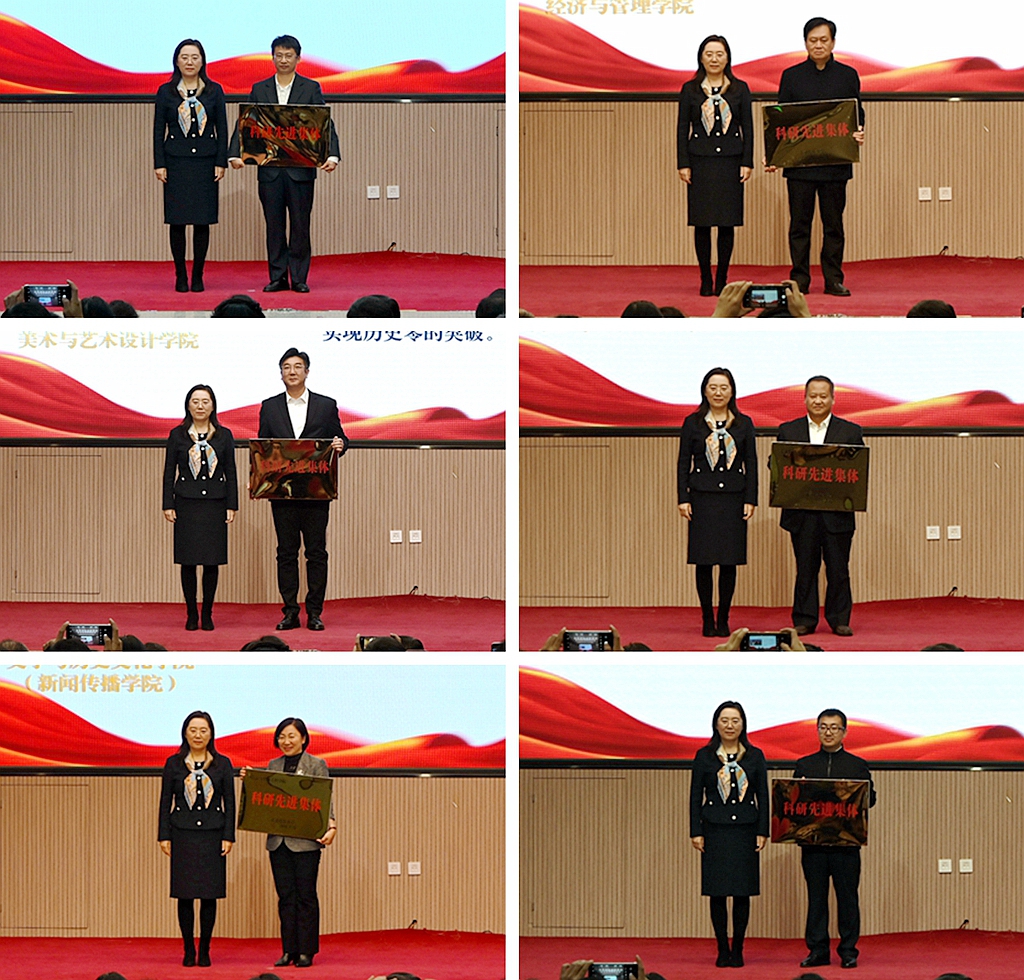 校黨委書記丁宏,校長、黨委副書記郝文斌,校黨委副書記齊宏偉為獲得表彰的科研先進集體和先進個人進行了頒獎。