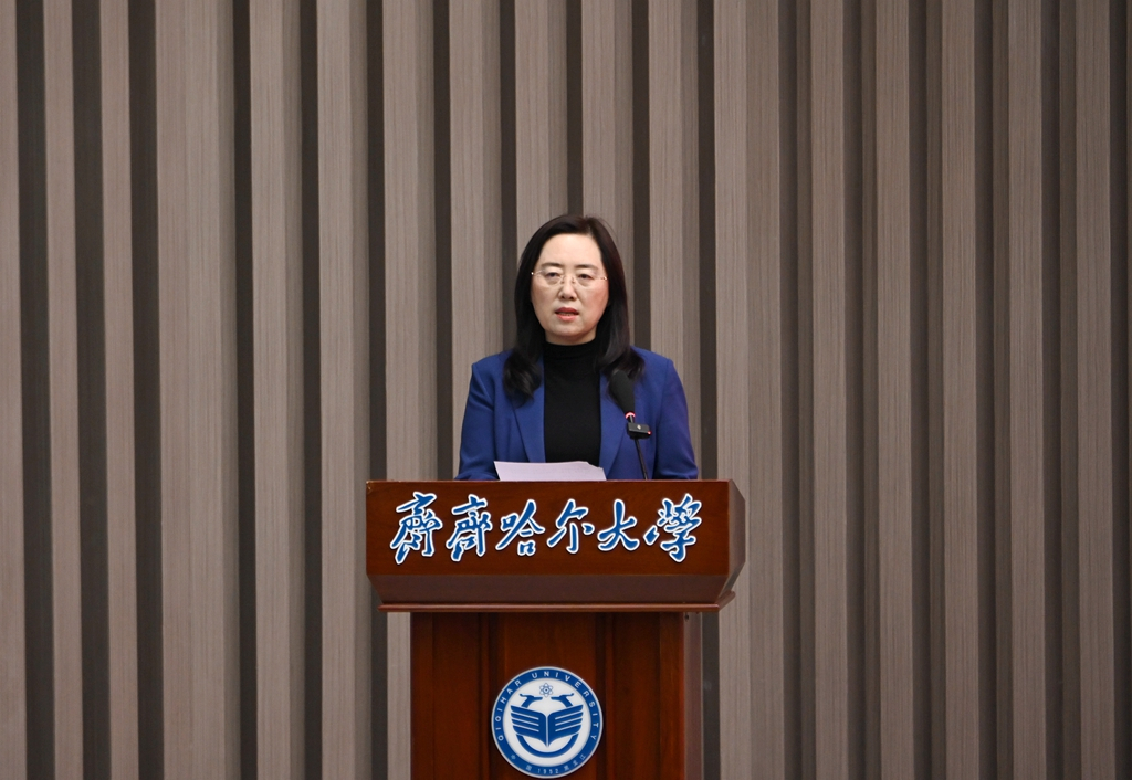 丁宏在致辭中表示,在全省率先發(fā)起成立“黨建引領大中小學思想政治教育一體化建設聯(lián)盟”,是貫徹落實黨的二十屆三中全會和全國、全省教育大會精神的具體舉措和實際行動,是我們校地之間合作推進大中小學思想政治教育一體化建設雙向奔赴的共贏之舉和創(chuàng)新之舉。我校將著力在“強體系、抓統(tǒng)籌、循規(guī)律、促銜接”上下功夫,與齊齊哈爾市共同推動大中小學思想政治教育一體化建設取得實績和實效。一是共同構建“黨建引領”大思政育人新生態(tài);二是共同打造“1+N”模式一體化育人協(xié)同鏈;三是共同建設“校地聯(lián)動”一體化育人合作群。她指出,推進大中小學思想政治教育一體化建設是黨中央和習近平總書記賦予新時代學校的重要政治任務,使命光榮、責任重大。面向未來,我校將與聯(lián)盟各成員單位攜手打造大中小學思想政治教育一體化建設的“區(qū)域樣本”,為構建一體化建設的“龍江范本”貢獻力量,引領帶動更多學校合力推動“大中小學思想政治教育一體化建設”,為龍江高質(zhì)量發(fā)展、可持續(xù)振興作出新貢獻。