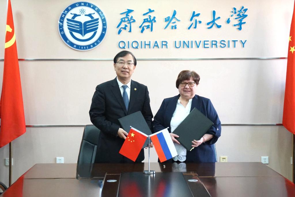 郝文斌與葉郭洛娃·卡麗娜·維克多洛夫娜代表雙方簽署合作協(xié)議。
