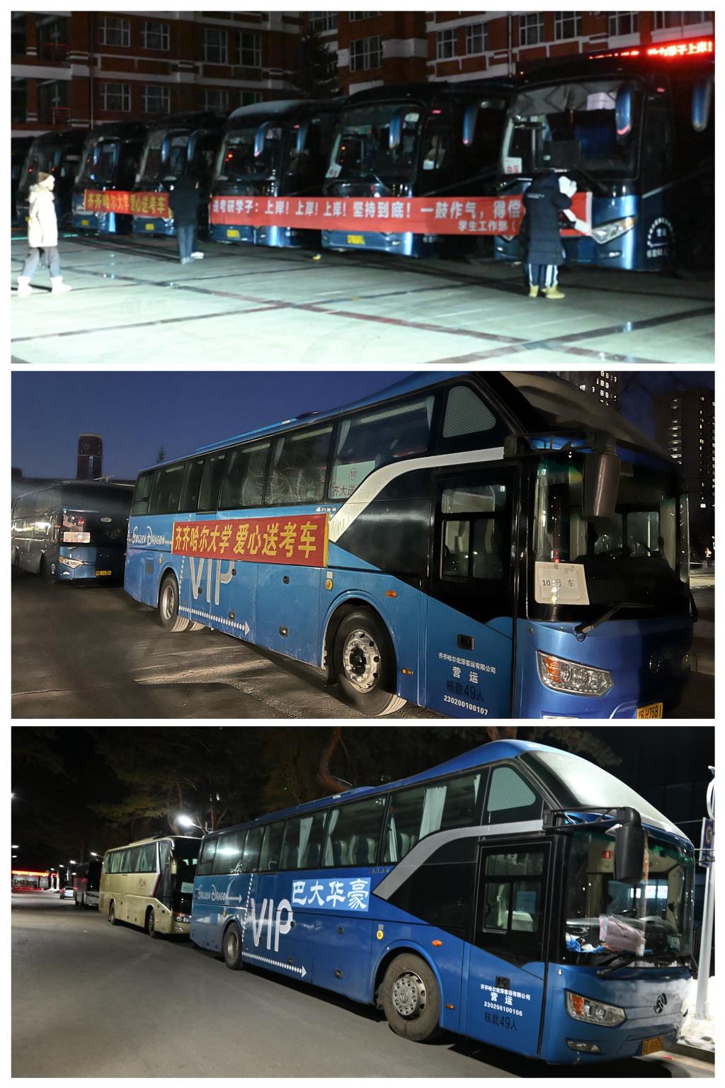 12月21日,2025年全國碩士研究生招生考試開考,我校精心籌備的“愛心送考”行動也隨之溫暖啟動。清晨6點,校園內(nèi)已是一片井然有序、斗志昂揚的景象。一輛輛裝飾著鼓勵標語和溫馨寄語的大巴車整齊排列,等待著將考研學子安全送達考點。