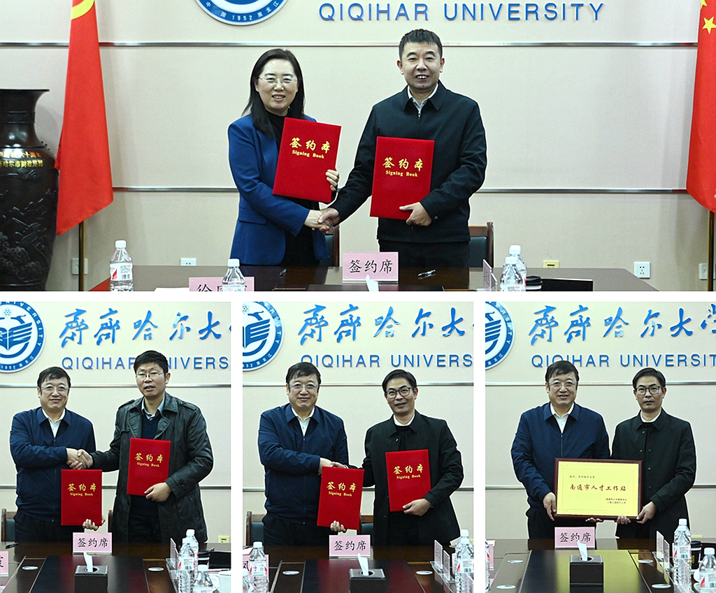 丁宏、張文治代表學(xué)校分別與江蘇省、揚州市、南通市簽署校地合作協(xié)議,并開展了南通市高校人才工作站授牌儀式。