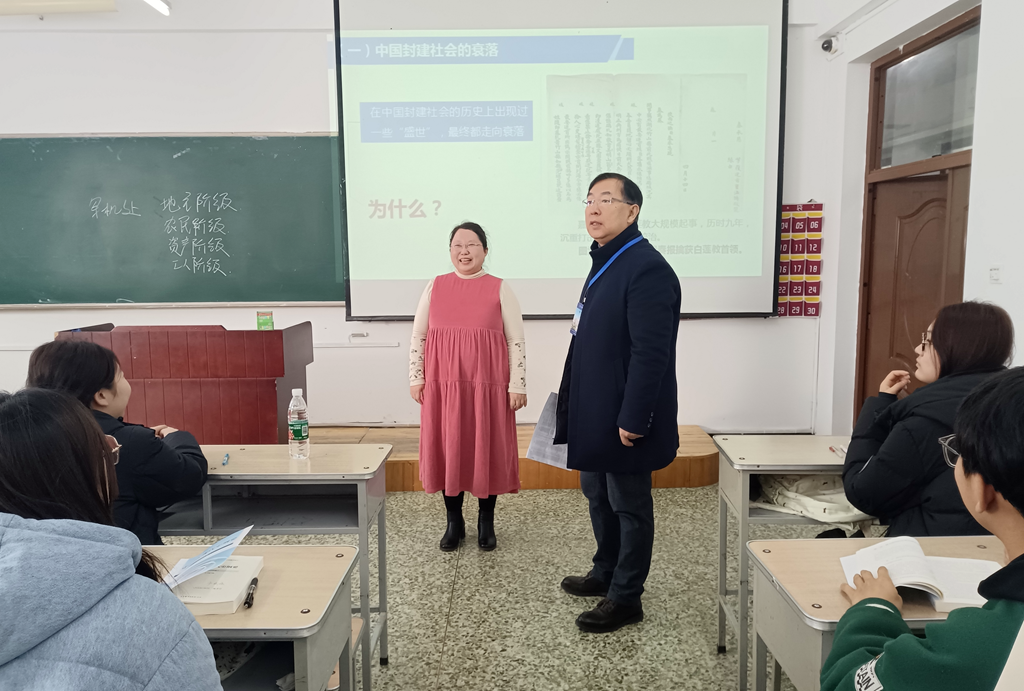 為深入了解新學(xué)期教師課堂教學(xué)準(zhǔn)備情況和學(xué)生學(xué)習(xí)狀態(tài),全面掌握學(xué)校本科教學(xué)情況,2月24日,校長郝文斌在新學(xué)期第一天第一節(jié)課來到馬克思主義學(xué)院祖晨陽老師講授的“中國近現(xiàn)代史綱要”課堂聽課。