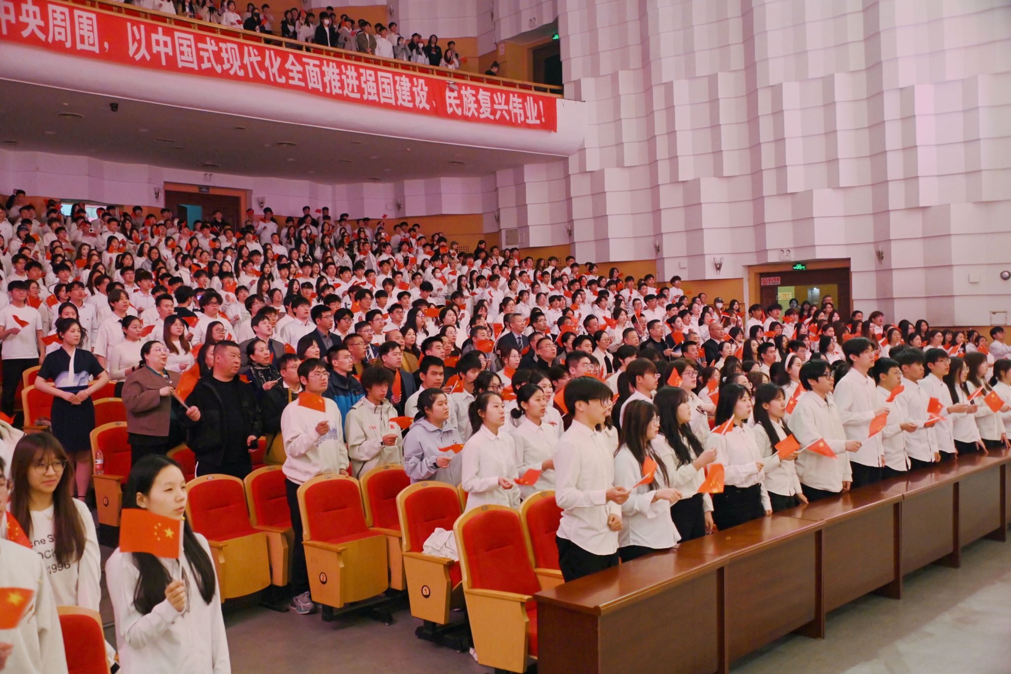 在“展望·未來——共赴時代新征程”單元中,校藝術團的同學們以合唱《有我》《世界贈予我的》點燃全場,青年學子用歌聲詮釋“強國有我”的信念與擔當,傳遞著對祖國的熱愛與理想的追求。晚會在全場高唱《歌唱祖國》的激昂旋律中圓滿落幕,師生齊聲祝愿祖國繁榮昌盛、齊大明天更美好。