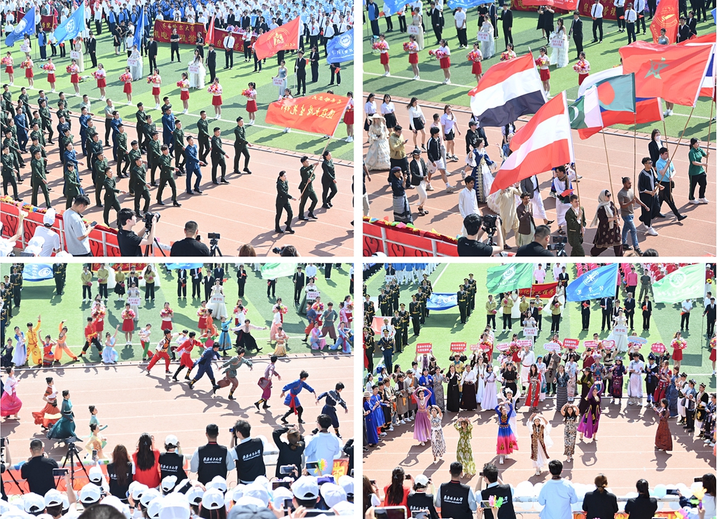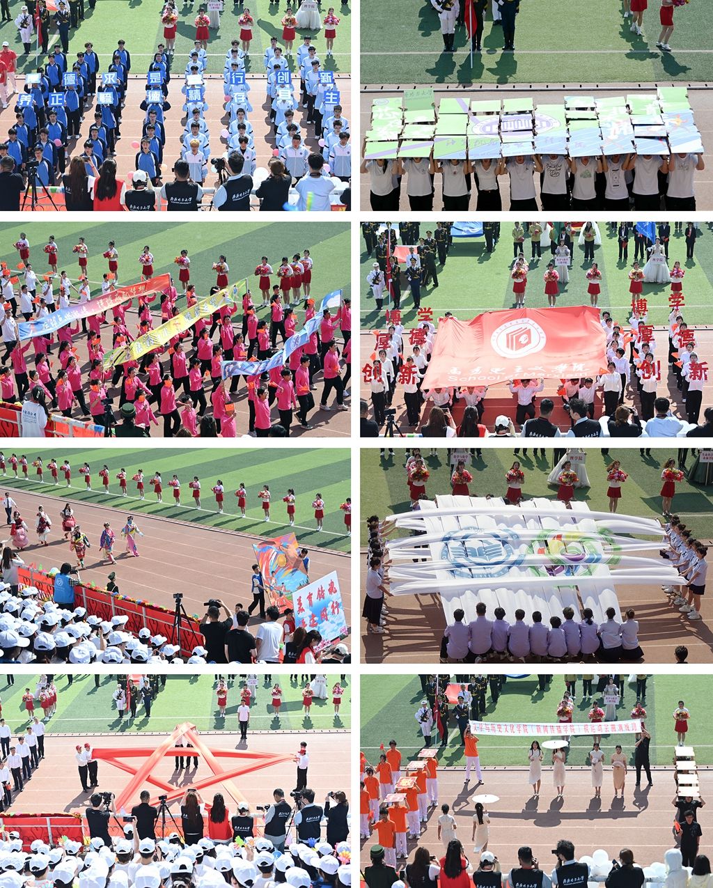 在激昂的《運動員進行曲》和熱烈的掌聲中,前導隊、裁判員方陣、各學院代表隊、退役大學生代表隊、各民族學生代表隊依次入場,接受大會檢閱。他們步伐整齊、英姿勃發(fā)、口號響亮,充分展現(xiàn)我校師生昂揚向上、奮勇拼搏的精神風貌!伴隨著莊嚴的國歌聲,鮮艷的五星紅旗在國旗隊的護衛(wèi)下冉冉升起,全場師生肅立行注目禮。