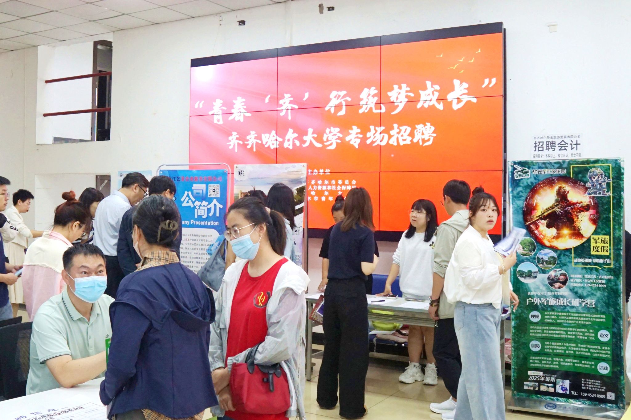 6月12日,由共青團(tuán)齊齊哈爾市委員會(huì)、齊齊哈爾市人力資源和社會(huì)保障局主辦,我校承辦“青春‘齊’行 筑夢(mèng)成長(zhǎng)”齊齊哈爾大學(xué)專場(chǎng)招聘活動(dòng)在學(xué)生指導(dǎo)中心舉辦。齊齊哈爾市委副書記劉振江,團(tuán)市委書記王剛,學(xué)校黨委書記丁宏、黨委副書記張文治,市委市政府相關(guān)部門、學(xué)校相關(guān)單位負(fù)責(zé)人,2025屆、2026屆輔導(dǎo)員及畢業(yè)生參加雙選會(huì)。