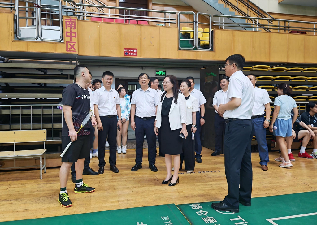 7月14日下午,校領(lǐng)導(dǎo)丁宏、郝文斌、齊宏偉、張文治、馬文輝來到學(xué)校體育館,慰問正在緊張備戰(zhàn)的師生們。