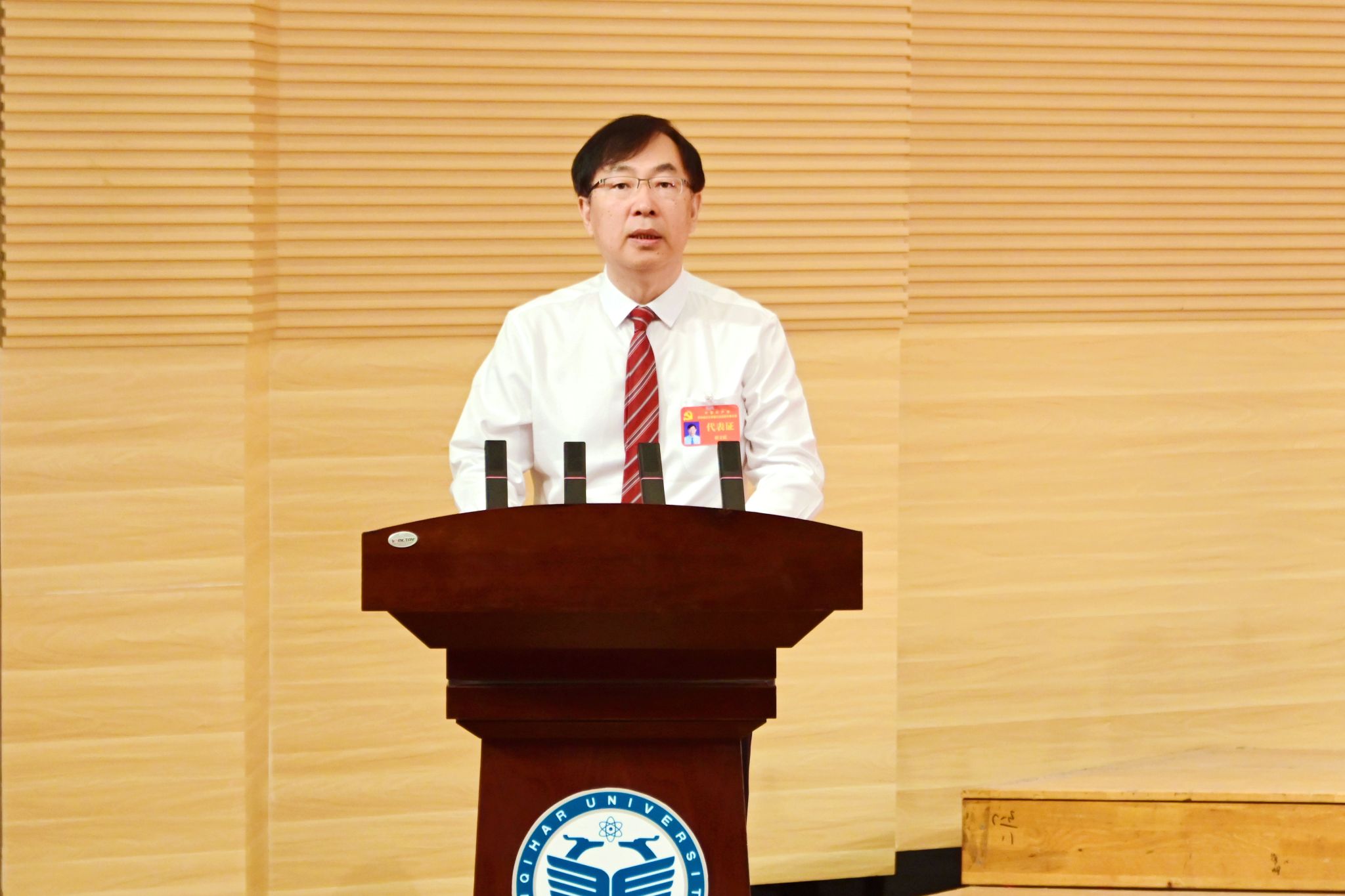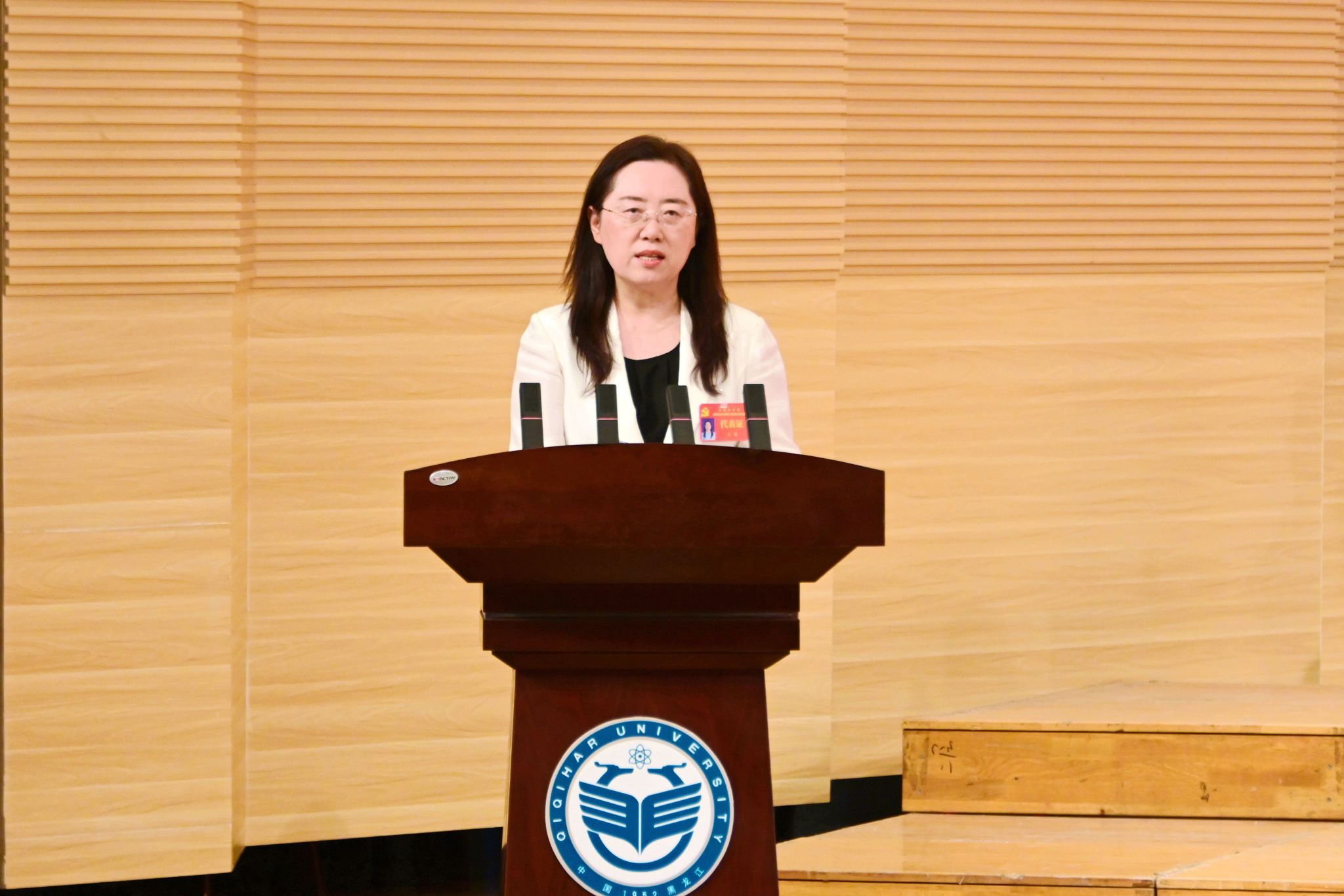 丁宏同志代表中國共產(chǎn)黨齊齊哈爾大學第二屆委員會作了題為《錨定新目標啟航新征程為建設(shè)國內(nèi)一流應用型綜合性大學而奮斗》的工作報告。報告共分為三部分:學校第二次黨代會以來的工作回顧;認清形勢,明確目標,科學謀劃高質(zhì)量發(fā)展新藍圖;高舉旗幟,勇?lián)姑瑠^力開創(chuàng)學校黨的建設(shè)新局面。