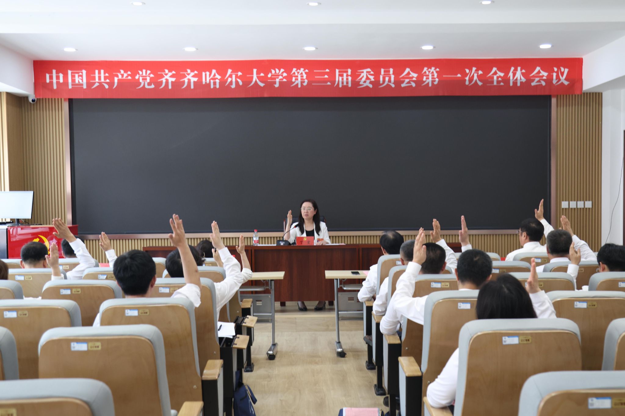 在激昂雄壯的《國際歌》聲中,中國共產(chǎn)黨齊齊哈爾大學(xué)第三次黨員代表大會勝利閉幕!