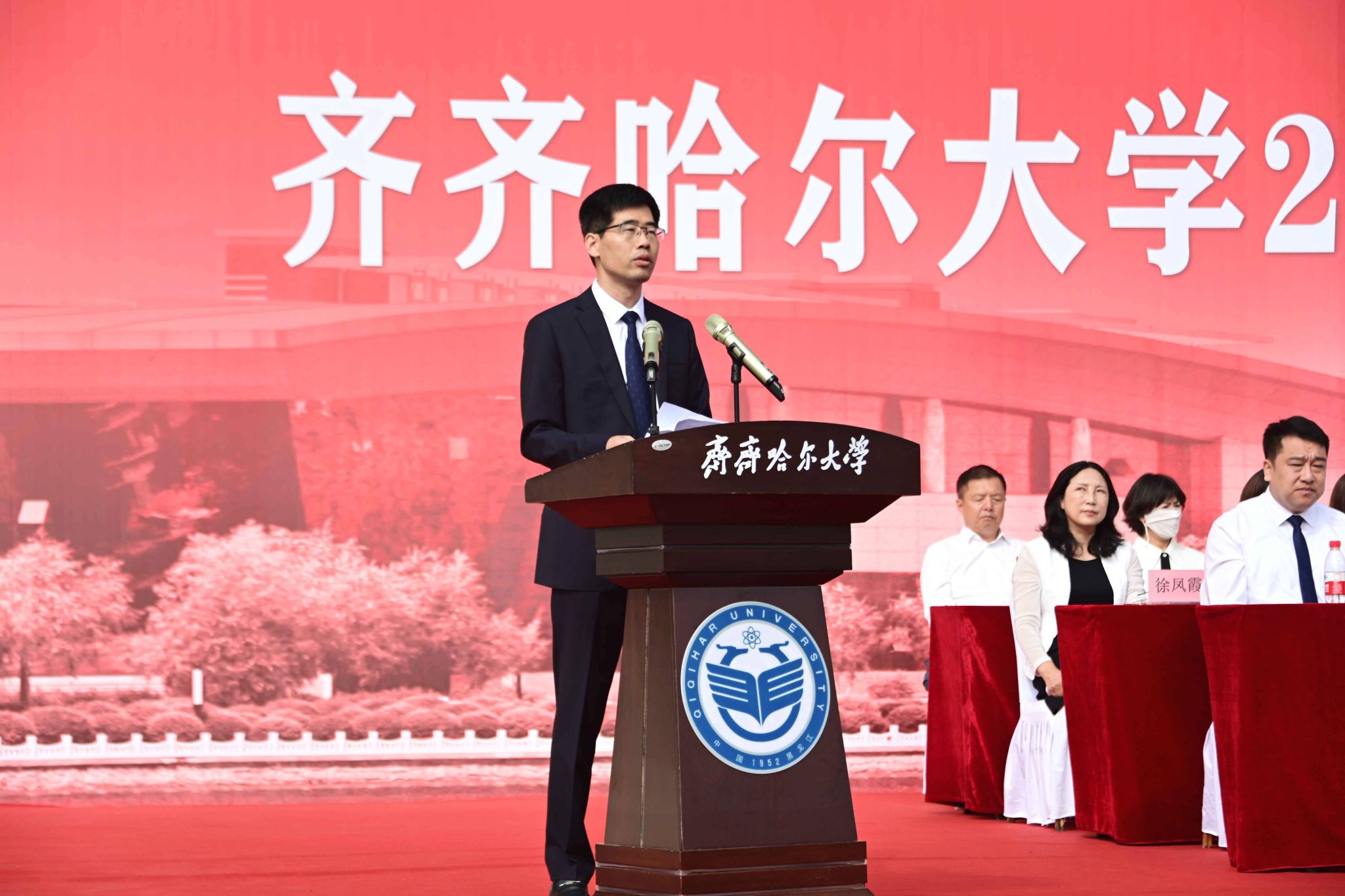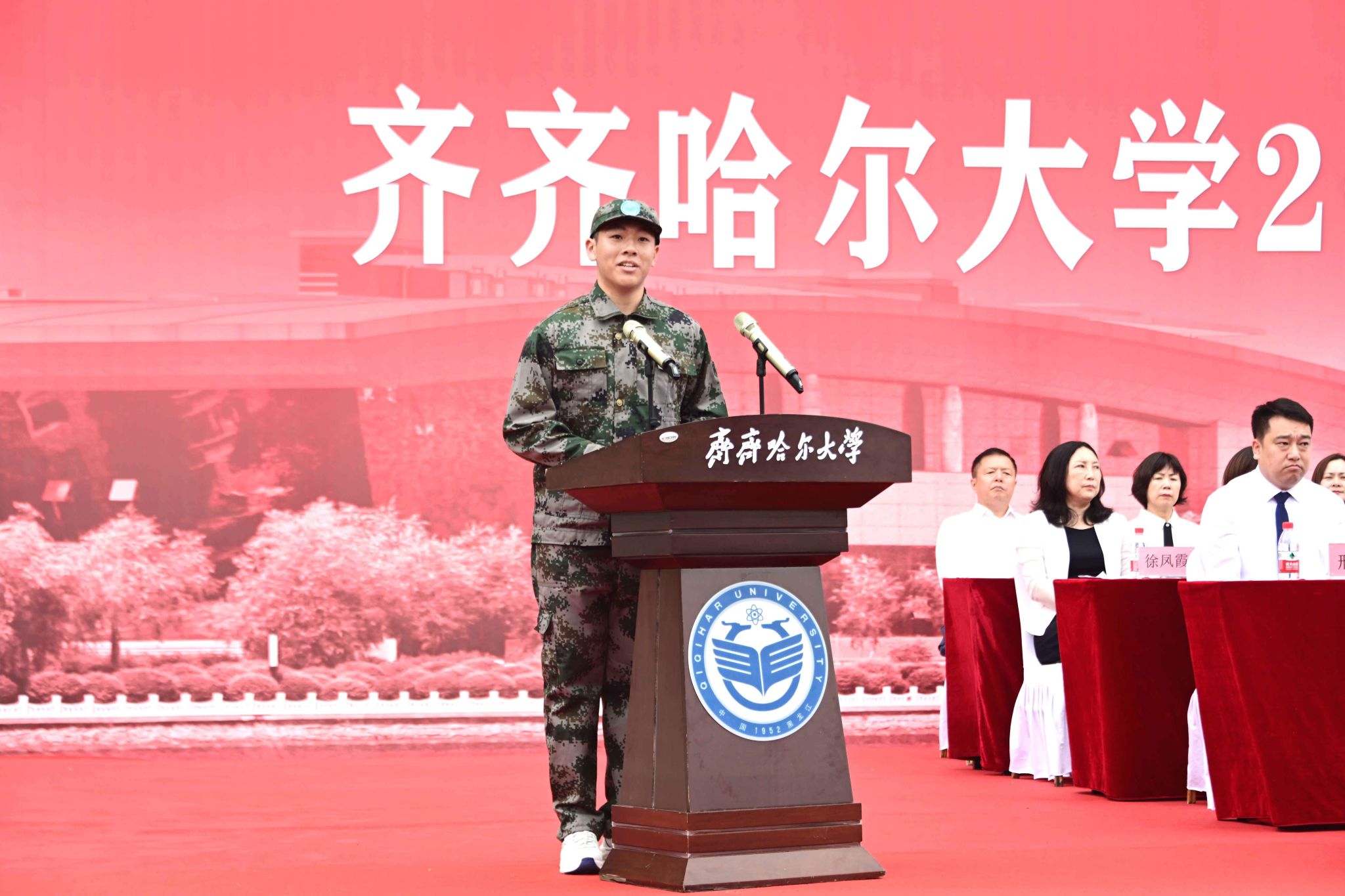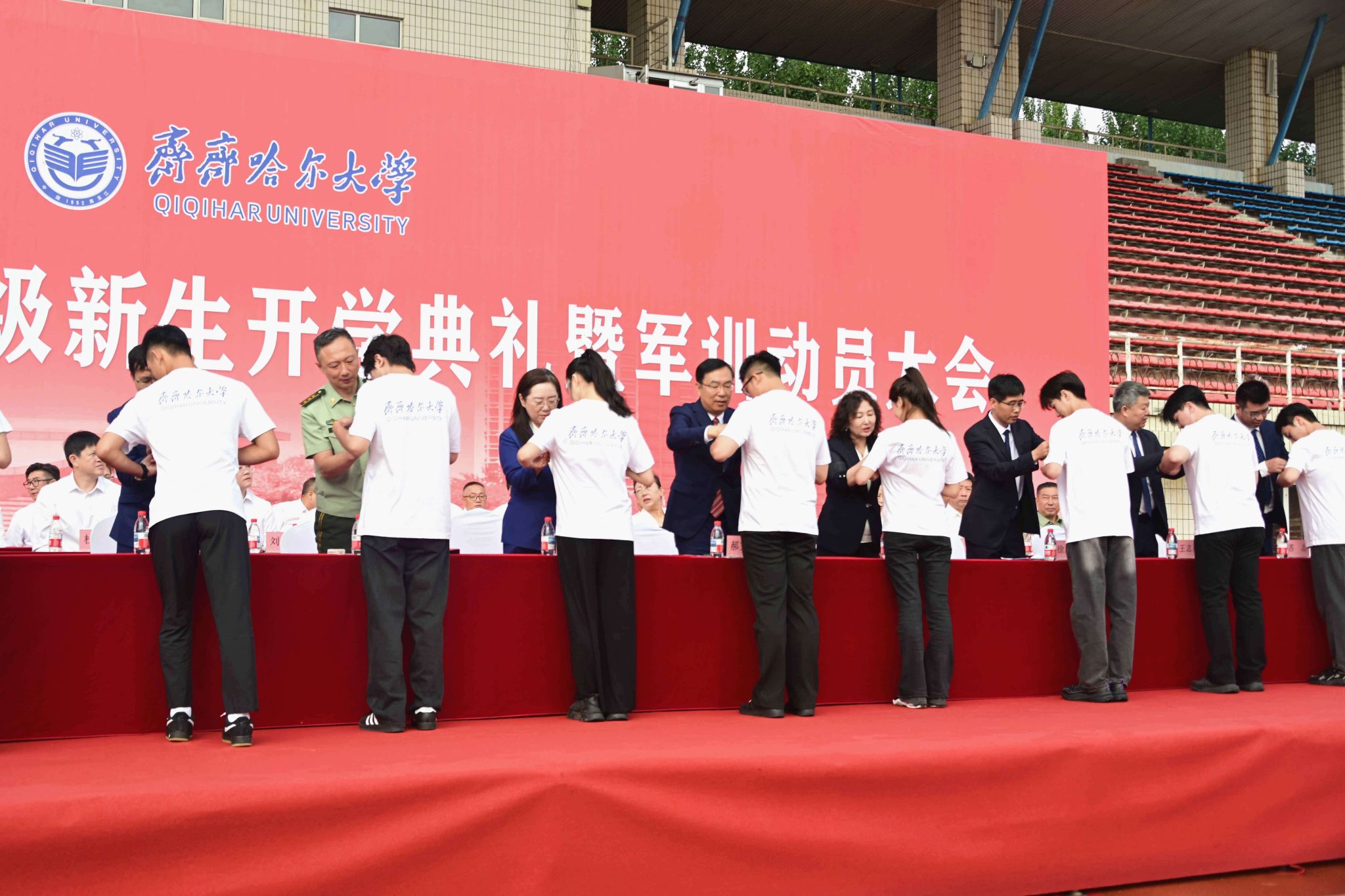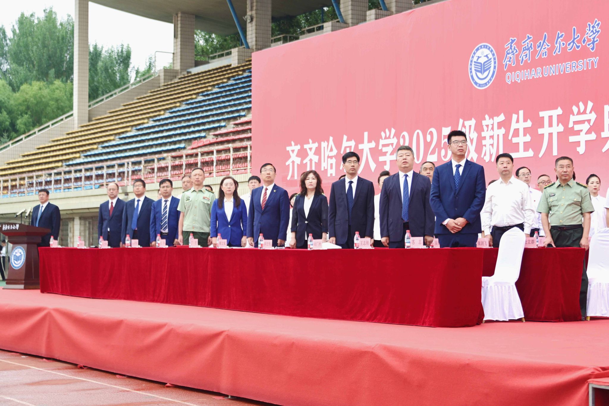 9月1日,齊齊哈爾大學(xué)2025級(jí)新生開(kāi)學(xué)典禮暨軍訓(xùn)動(dòng)員大會(huì)在西區(qū)體育場(chǎng)舉行,學(xué)校全體領(lǐng)導(dǎo)班子成員、武警齊齊哈爾支隊(duì)上校支隊(duì)長(zhǎng)劉洋出席典禮,優(yōu)秀畢業(yè)生代表、學(xué)校軍訓(xùn)團(tuán)成員、各學(xué)院黨政負(fù)責(zé)人以及7000余名新生參加典禮。黨委副書(shū)記張文治主持典禮。