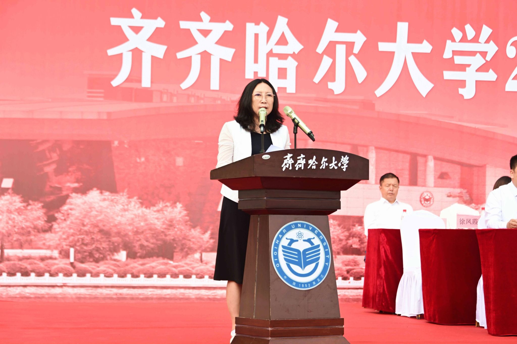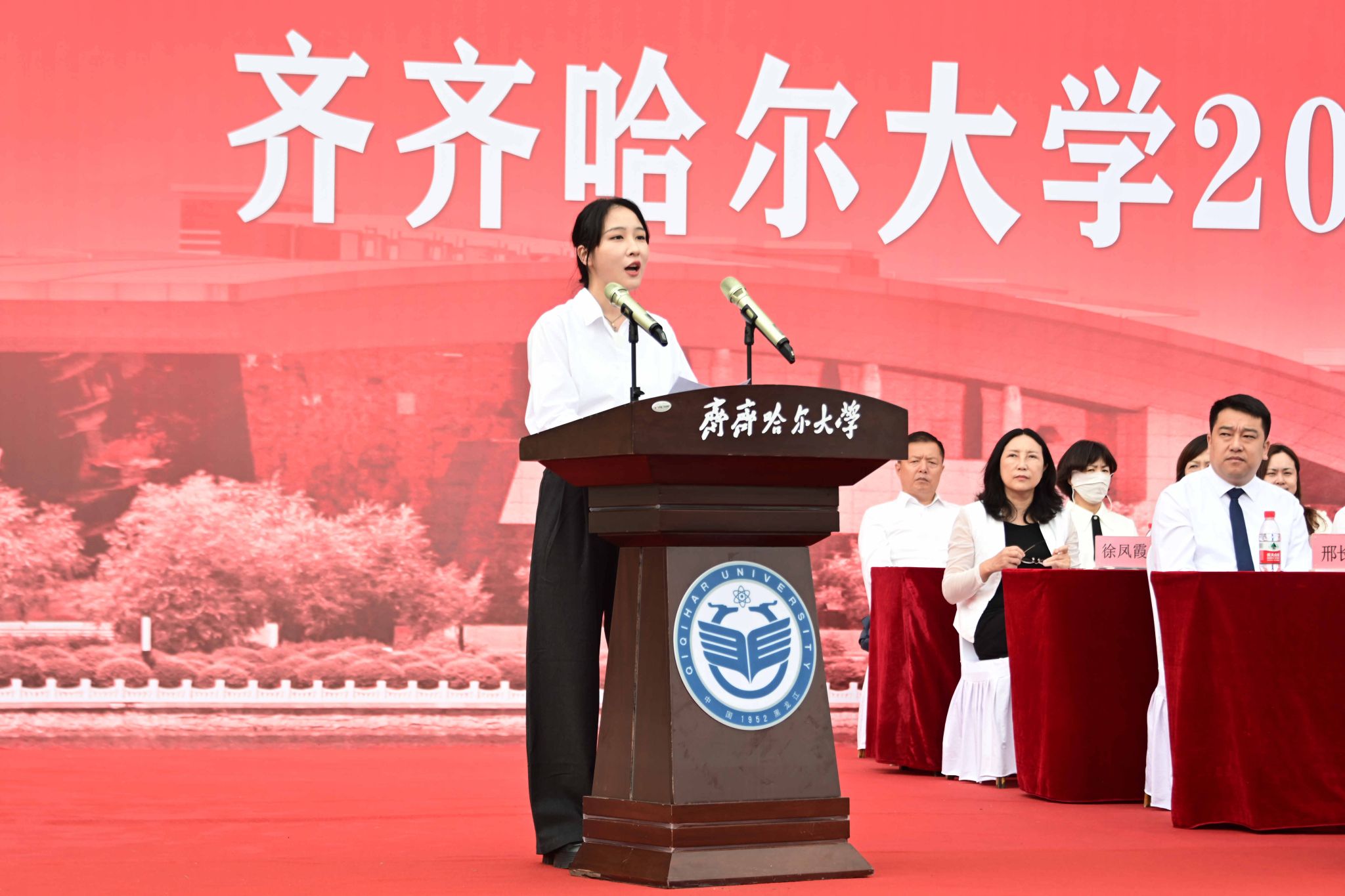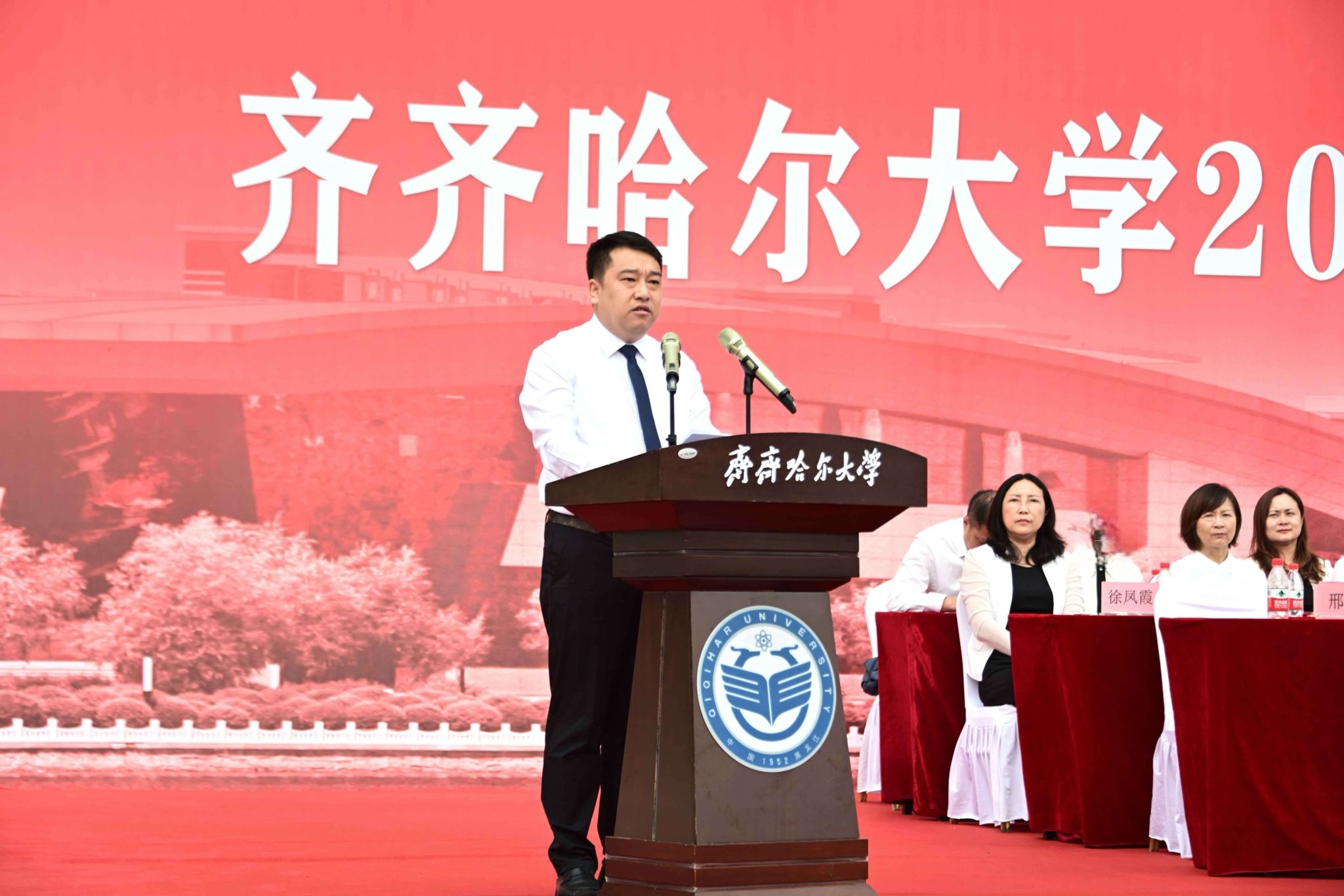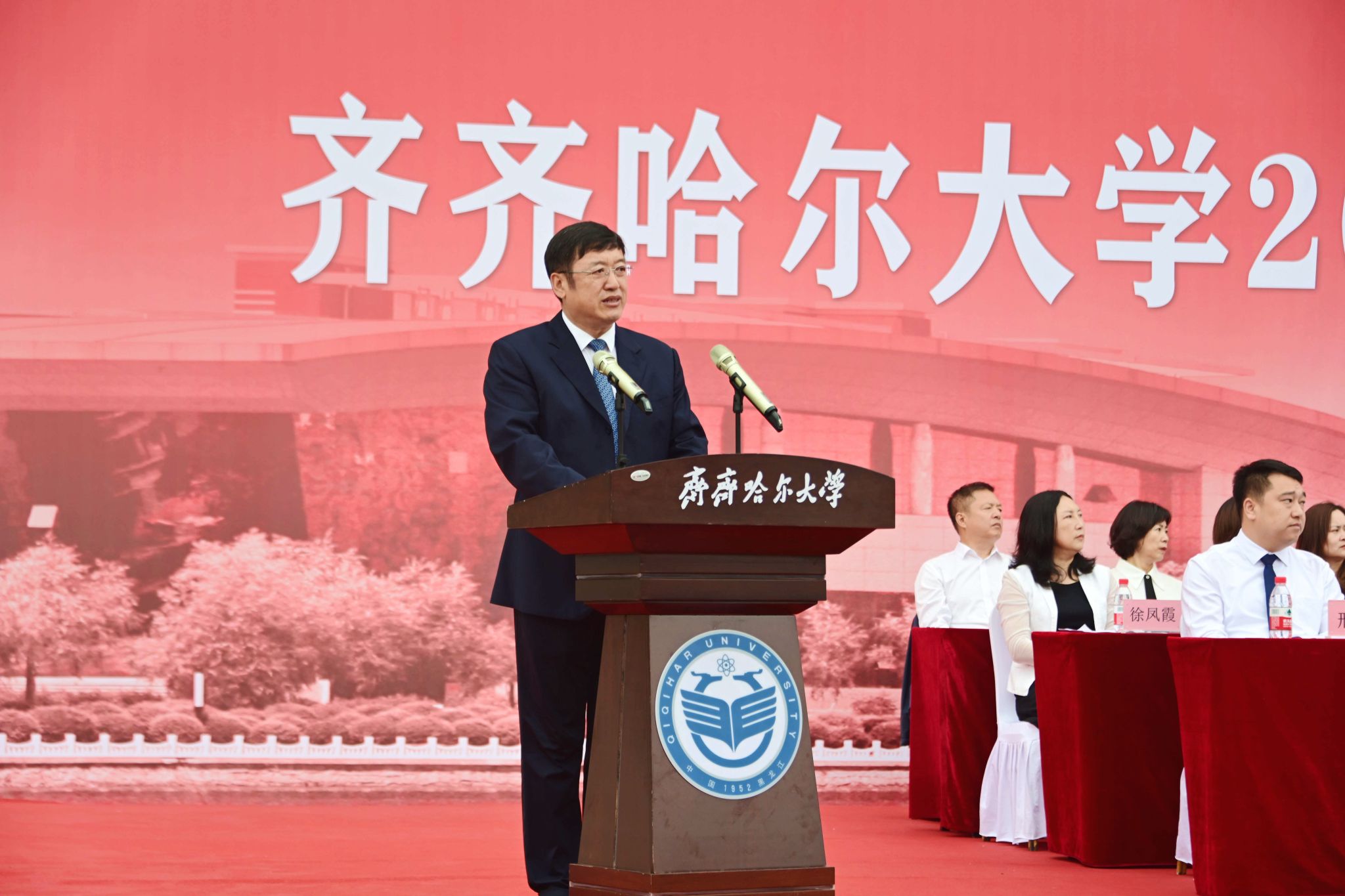 9月1日,齊齊哈爾大學(xué)2025級(jí)新生開(kāi)學(xué)典禮暨軍訓(xùn)動(dòng)員大會(huì)在西區(qū)體育場(chǎng)舉行,學(xué)校全體領(lǐng)導(dǎo)班子成員、武警齊齊哈爾支隊(duì)上校支隊(duì)長(zhǎng)劉洋出席典禮,優(yōu)秀畢業(yè)生代表、學(xué)校軍訓(xùn)團(tuán)成員、各學(xué)院黨政負(fù)責(zé)人以及7000余名新生參加典禮。黨委副書(shū)記張文治主持典禮。