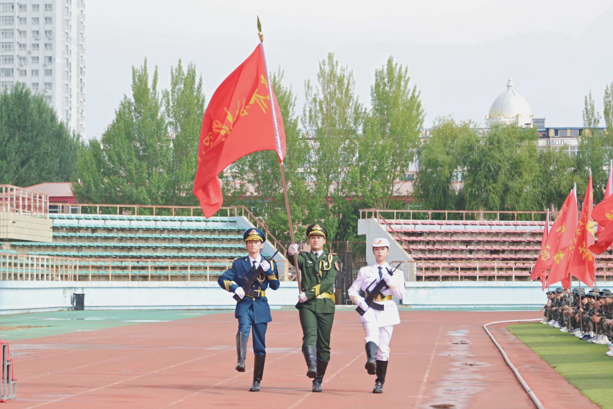 副校長(zhǎng)、黨委常委徐廣洲宣布軍訓(xùn)團(tuán)組成名單及軍訓(xùn)團(tuán)編制序列,并下達(dá)迎軍訓(xùn)團(tuán)團(tuán)旗命令。