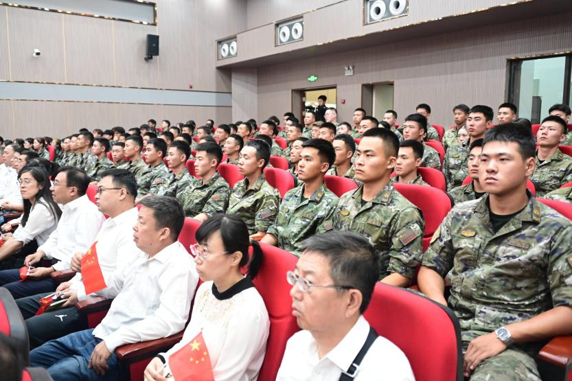 閱兵正式開始時,嘹亮的國歌聲通過屏幕傳來,全體師生莊嚴(yán)肅立,與現(xiàn)場同頻,齊聲高唱,雄壯的旋律在校園的每一個角落回蕩。