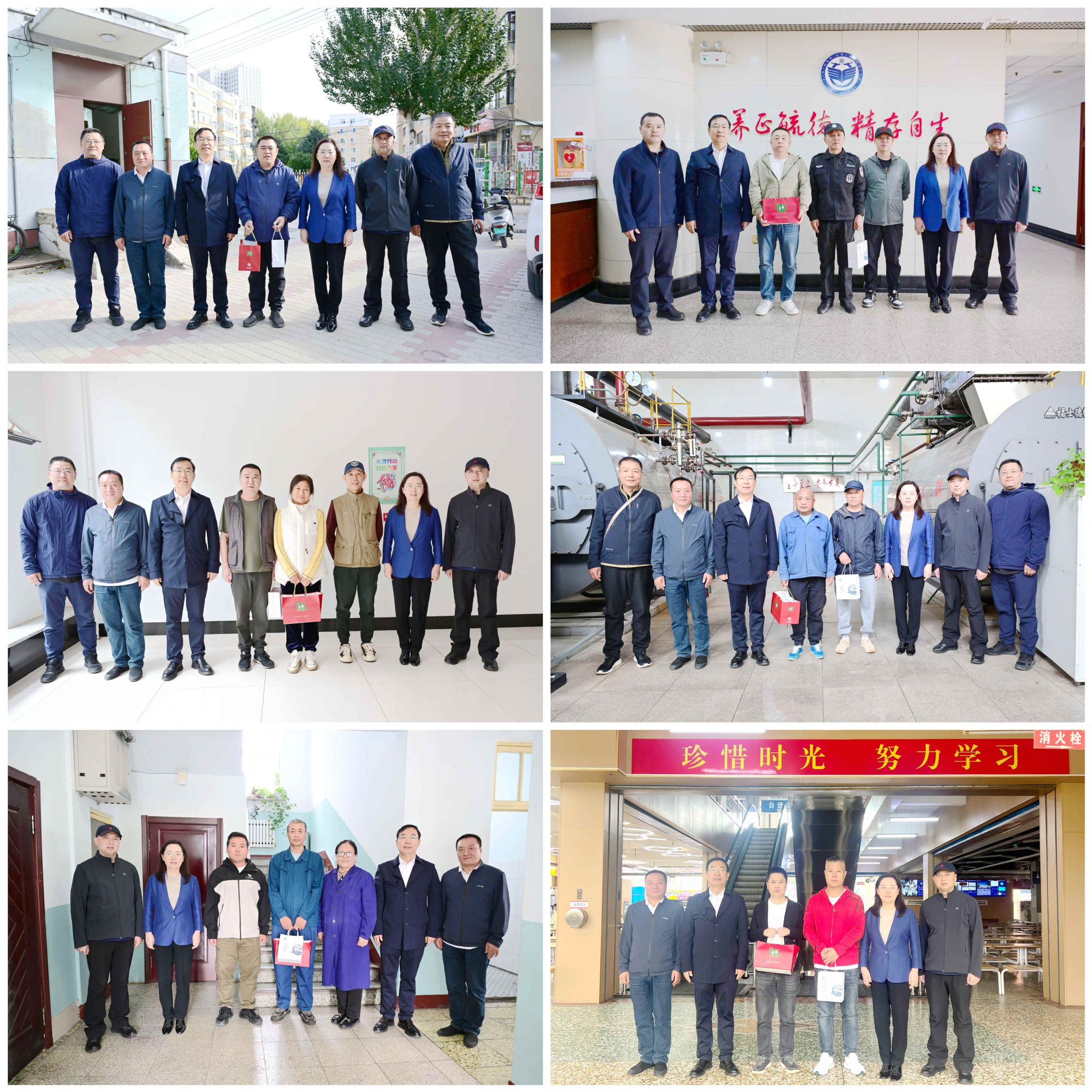 校領(lǐng)導(dǎo)一行先后來(lái)到中區(qū)大門(mén)衛(wèi)、110服務(wù)中心、機(jī)關(guān)樓門(mén)衛(wèi)、校園總值班室、圖書(shū)館、中區(qū)泵房、購(gòu)物中心、體育館、西二區(qū)學(xué)生浴池、東區(qū)變電所、東區(qū)二食堂等地?!按蠹倚量嗔?!”“祝大家節(jié)日快樂(lè)!”每到一處,校領(lǐng)導(dǎo)都與值班值守人員親切握手、熱情交談,深入了解節(jié)日期間的工作安排、值班情況以及生活保障,并送上精心準(zhǔn)備的慰問(wèn)品,對(duì)他們?cè)诠?jié)假日期間的恪盡職守、無(wú)私奉獻(xiàn)表示衷心感謝。