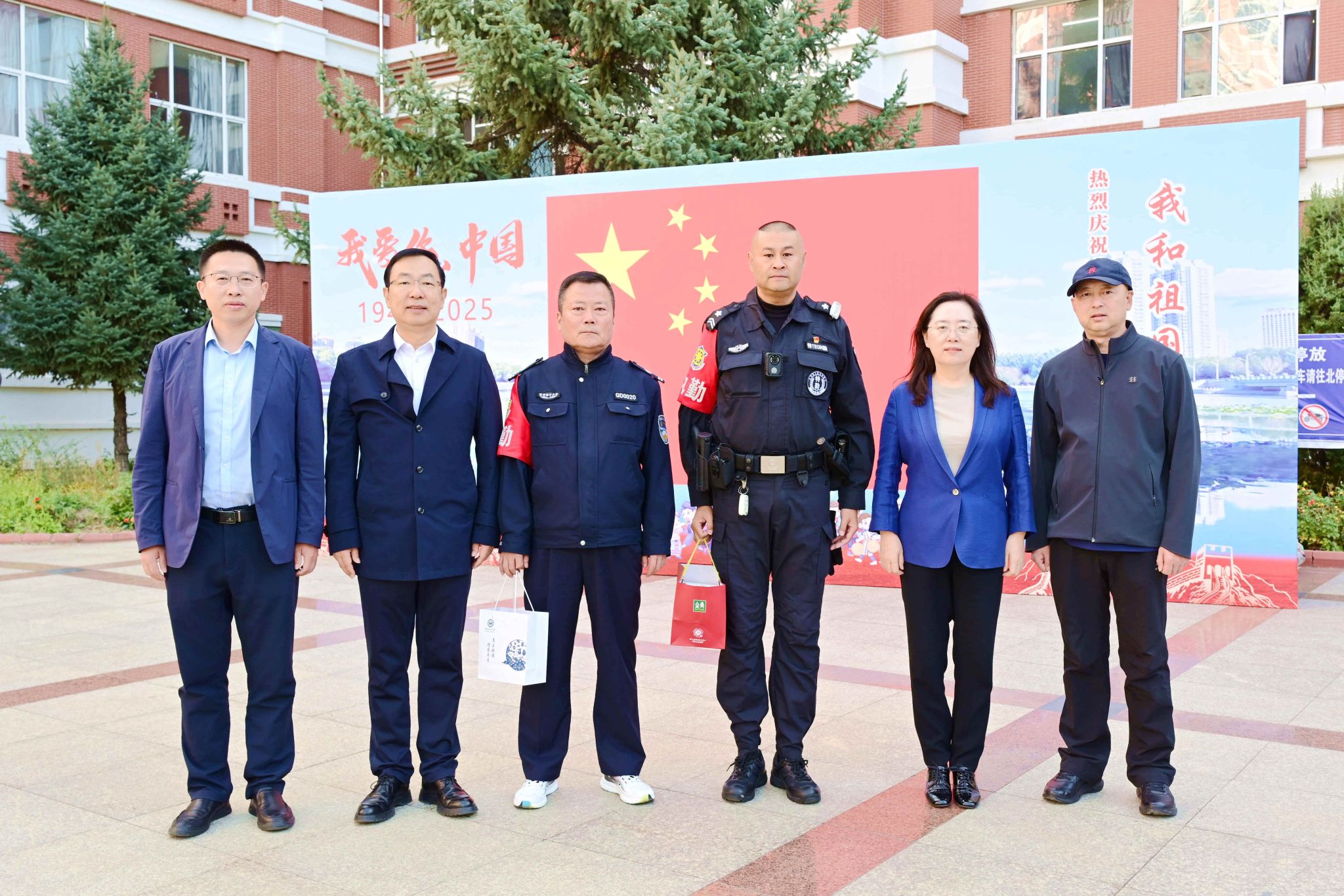 發(fā)布日期:2025-10-01 點(diǎn)擊量:10月1日上午,在國(guó)慶節(jié)、中秋節(jié)來(lái)臨之際,校黨委書(shū)記丁宏,校長(zhǎng)、黨委副書(shū)記郝文斌,副校長(zhǎng)、黨委常委杜海軍帶領(lǐng)相關(guān)職能部門(mén)負(fù)責(zé)人,深入校園多個(gè)關(guān)鍵區(qū)域,親切看望慰問(wèn)國(guó)慶節(jié)當(dāng)天值班值守的一線工作人員,代表學(xué)校向他們致以節(jié)日的誠(chéng)摯問(wèn)候和崇高敬意,并送上國(guó)慶、中秋雙節(jié)的美好祝福。