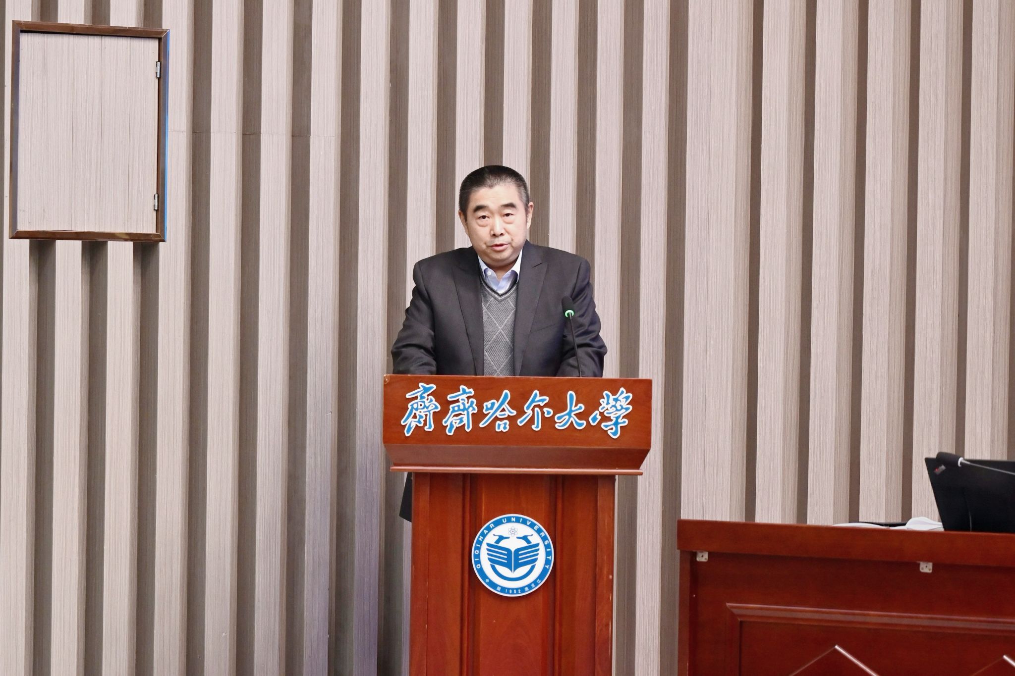 欒天罡組長(zhǎng)代表專家組向?qū)W校全面反饋了審核評(píng)估專家組整體考察意見(jiàn)。欒天罡指出,經(jīng)過(guò)線上評(píng)估和入校實(shí)地核查,專家組認(rèn)為,齊齊哈爾大學(xué)高度重視本科教育教學(xué)審核評(píng)估工作,落實(shí)以評(píng)促建、以評(píng)促改、以評(píng)促管、以評(píng)促?gòu)?qiáng)的要求,黨委統(tǒng)領(lǐng)、部門協(xié)同、學(xué)院落實(shí),全校上下進(jìn)行了廣泛的動(dòng)員和充分準(zhǔn)備,在迎評(píng)促建過(guò)程中不斷完善內(nèi)涵建設(shè)與治理效能,產(chǎn)教融合與協(xié)同育人機(jī)制持續(xù)健全,呈現(xiàn)出班子團(tuán)結(jié)務(wù)實(shí)、教師愛(ài)崗敬業(yè)、青年學(xué)子積極向上的良好勢(shì)頭和育人生態(tài)。