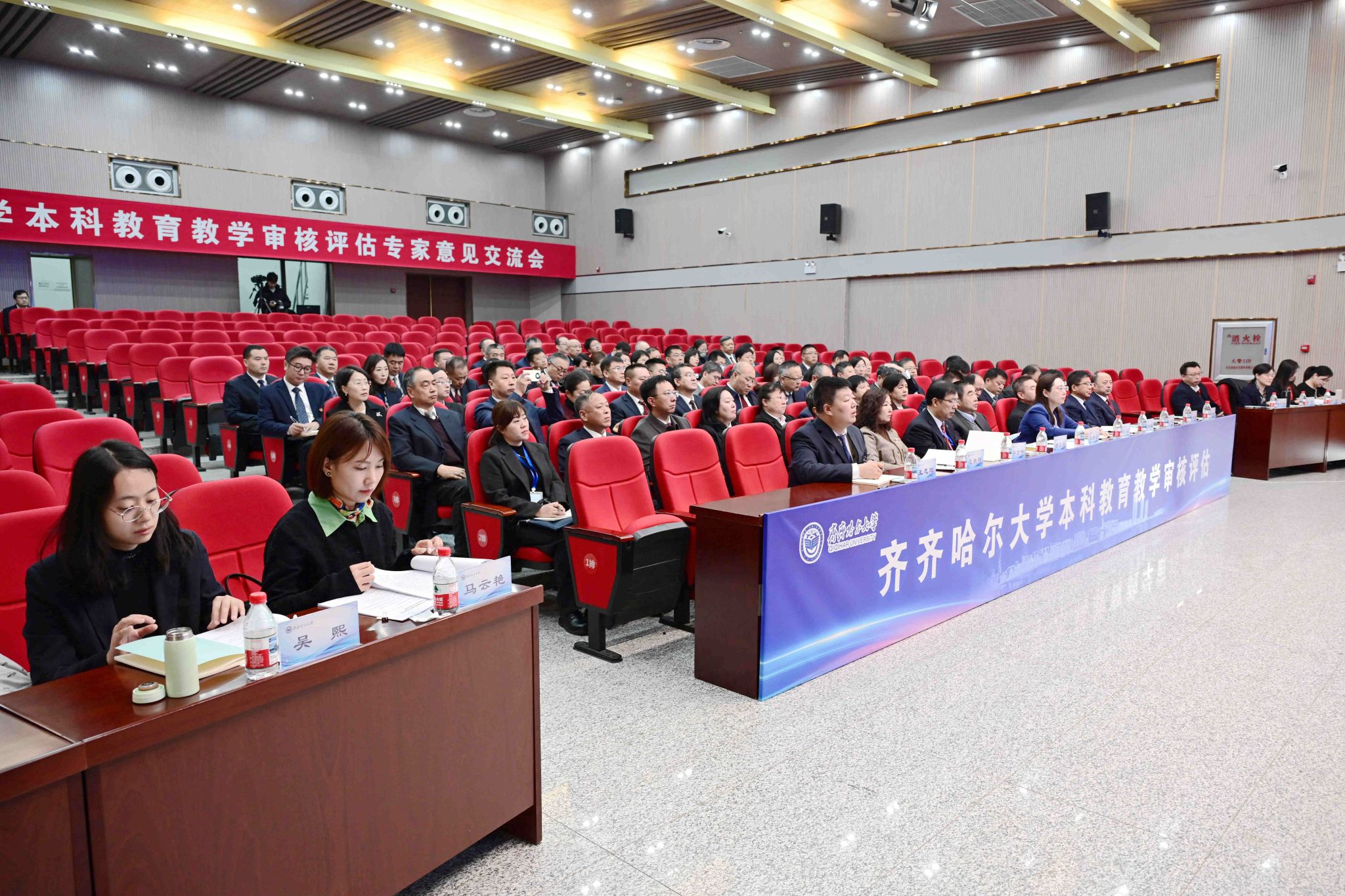 審核評(píng)估專家組項(xiàng)目管理員、佳木斯大學(xué)發(fā)展規(guī)劃與高教研究中心主任張宏偉,專家組秘書(shū)、五邑大學(xué)發(fā)展規(guī)劃處處長(zhǎng)胡靜,黑龍江工程學(xué)院教務(wù)處副科長(zhǎng)張燕,黑龍江省教育廳二級(jí)巡視員廉世民,督導(dǎo)室主任、一級(jí)調(diào)研員王奇峰,督導(dǎo)室一級(jí)主任科員馬云艷、高等教育處一級(jí)主任科員吳熙,學(xué)校黨委書(shū)記丁宏、校長(zhǎng)郝文斌,以及學(xué)校領(lǐng)導(dǎo)班子成員,全校正處級(jí)領(lǐng)導(dǎo)干部參加了評(píng)估意見(jiàn)交流會(huì)。會(huì)議由專家組副組長(zhǎng)、東北農(nóng)業(yè)大學(xué)副校長(zhǎng)劉忠華主持。