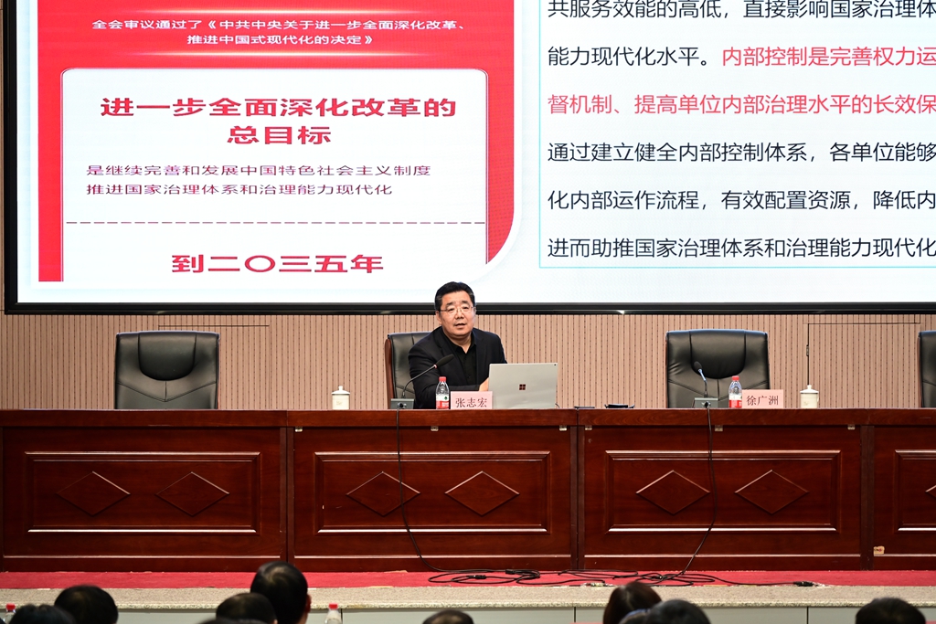 為深入貫徹落實財政部、教育部關(guān)于高等學(xué)校內(nèi)部控制建設(shè)的相關(guān)要求,提高學(xué)校內(nèi)控建設(shè)意識,提升治理能力和治理水平,10月30日下午,哈爾濱師范大學(xué)國有資產(chǎn)管理處處長、財政部內(nèi)部控制咨詢委員會專家張志宏研究員應(yīng)邀來我校作內(nèi)部控制建設(shè)專題宣講。學(xué)校領(lǐng)導(dǎo)班子成員、副處級以上干部,各學(xué)院、部門內(nèi)控組織成員參加了宣講。