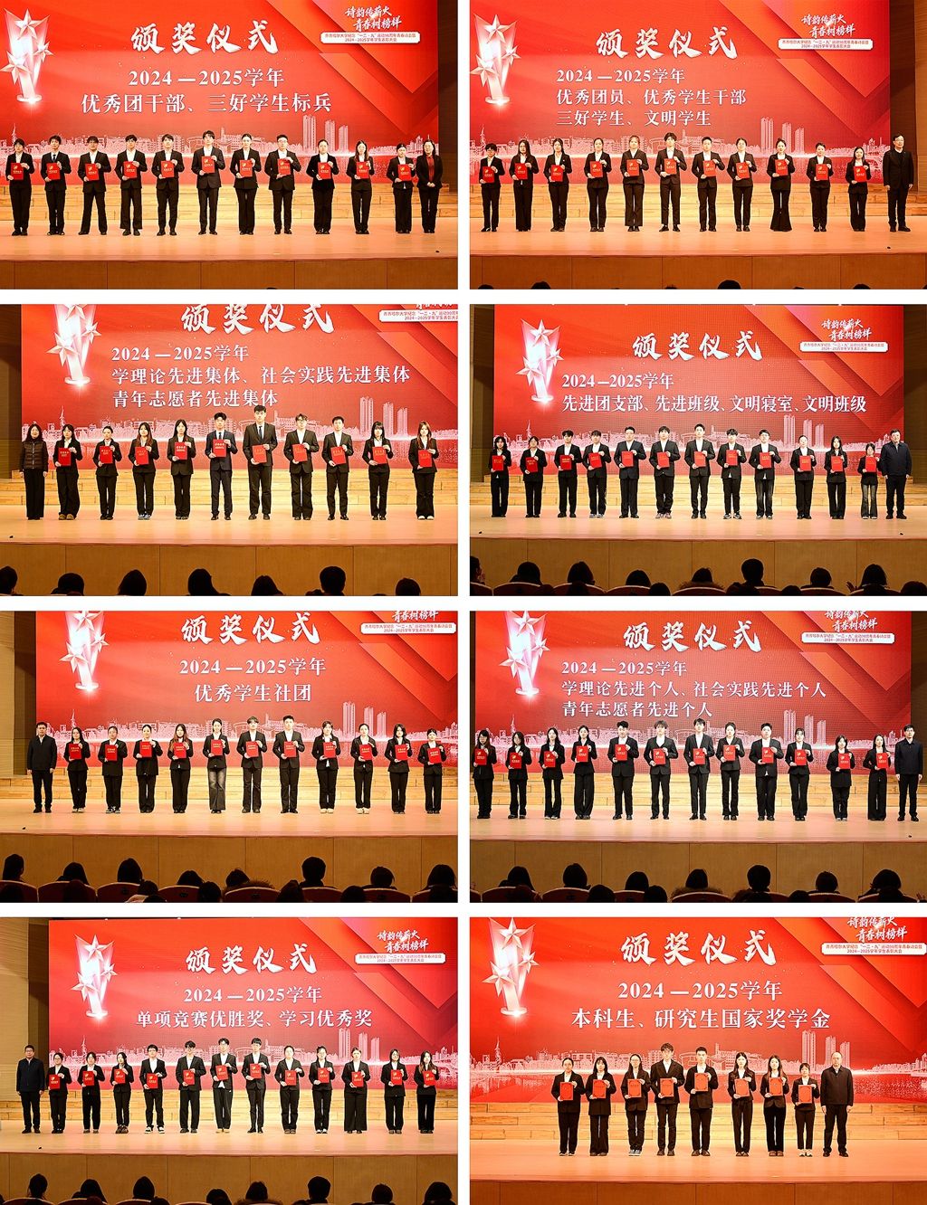 為選樹榜樣、激勵奮進(jìn),大會現(xiàn)場舉行了2024-2025學(xué)年學(xué)生先進(jìn)集體與個人表彰儀式,學(xué)校領(lǐng)導(dǎo)分別為獲獎代表頒發(fā)證書。