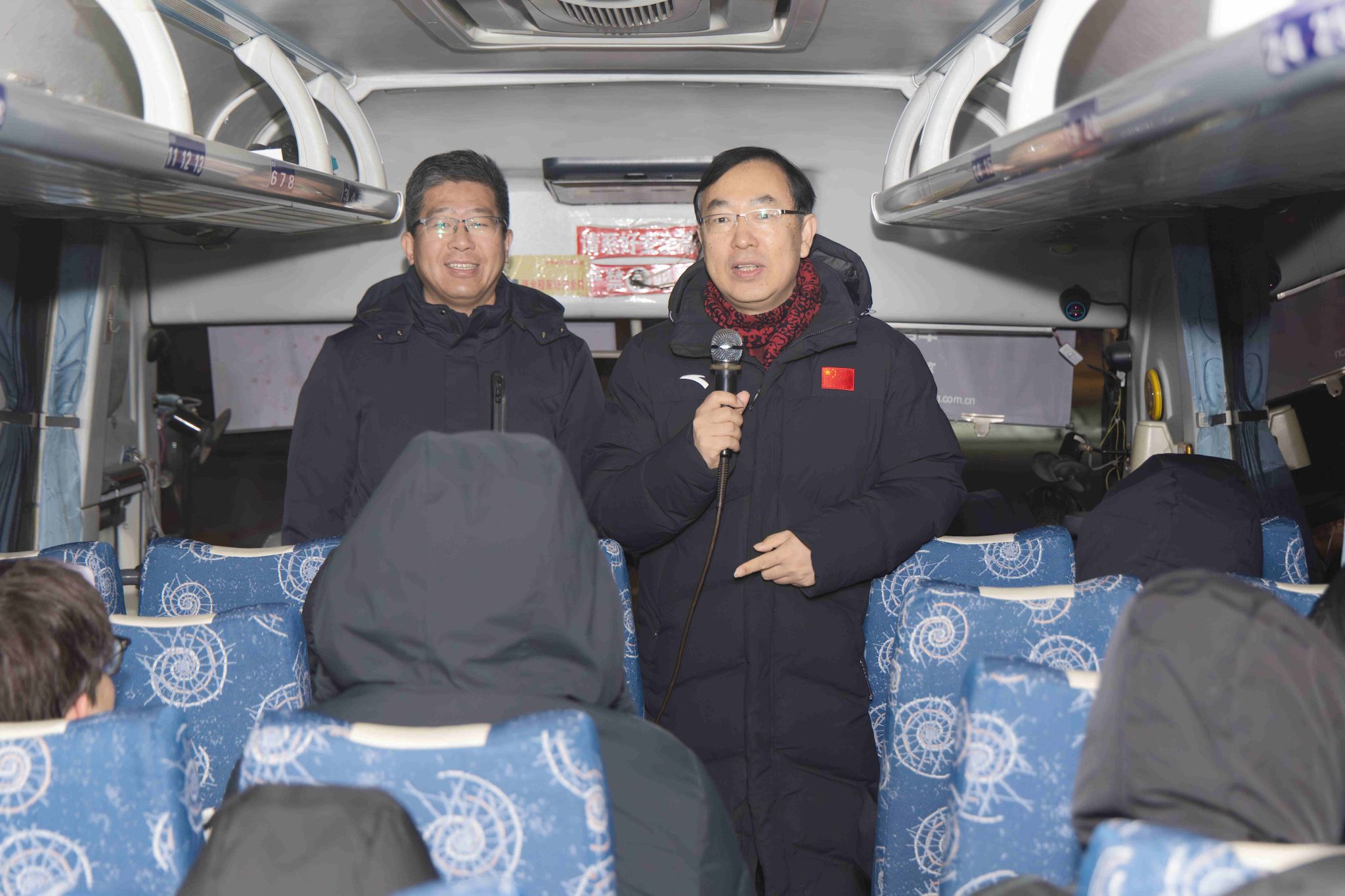 清晨六點(diǎn)半,天色未明,寒風(fēng)凜冽,一輛輛承載暖意和愛意的大巴車整齊排列,等待著將考研學(xué)子安全送達(dá)考點(diǎn)。校領(lǐng)導(dǎo)們早早來到各集合點(diǎn),走上大巴車送上溫馨祝福,與考生們親切交流,叮囑大家放松心態(tài)、沉著應(yīng)考,并親手為考生送上寓意“甜蜜順利”的糖果禮包,一句句真摯的祝福、一份份貼心的禮物,傳遞著學(xué)校對學(xué)子們?nèi)缂胰税愕臓繏炫c支持。