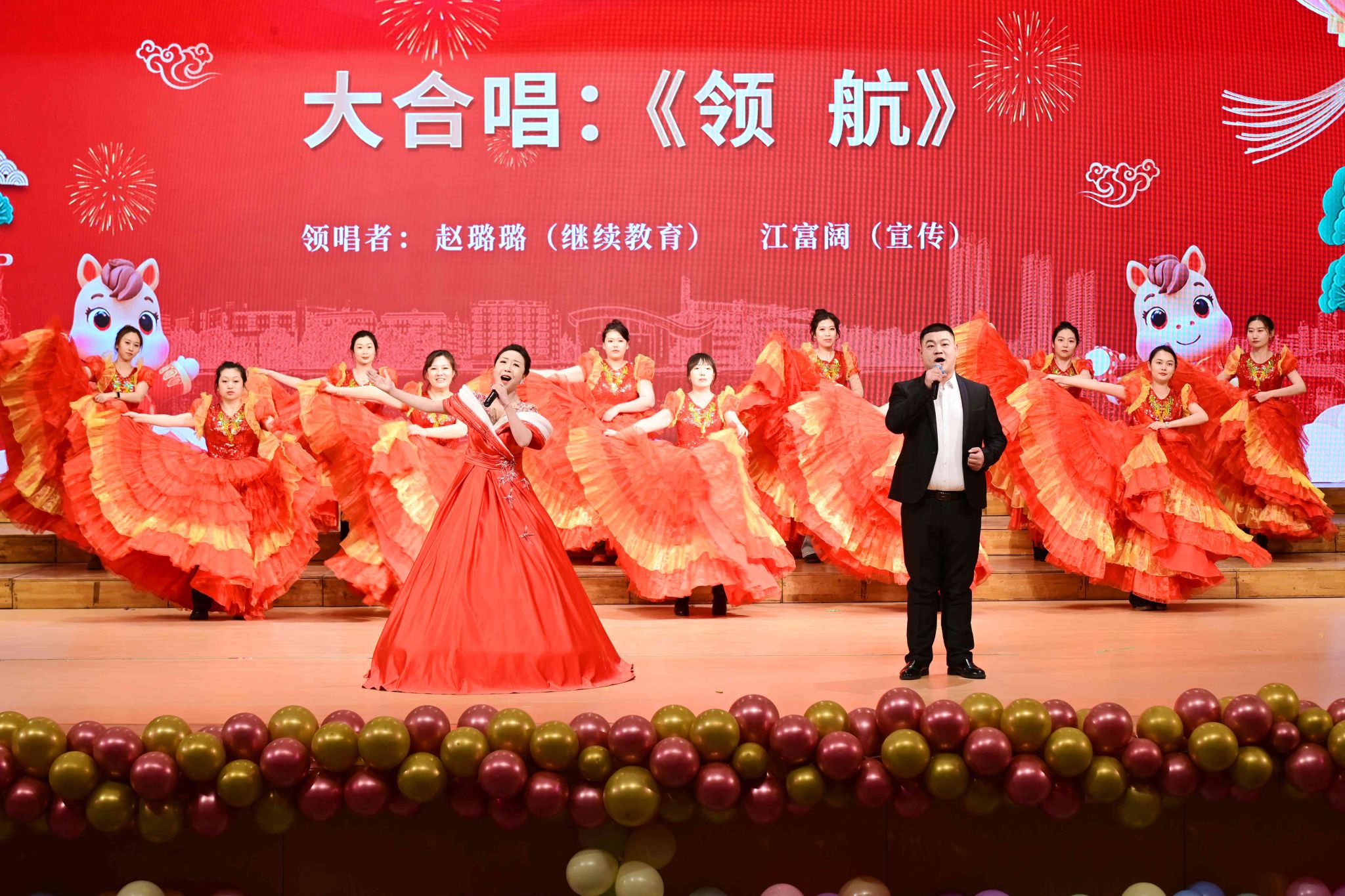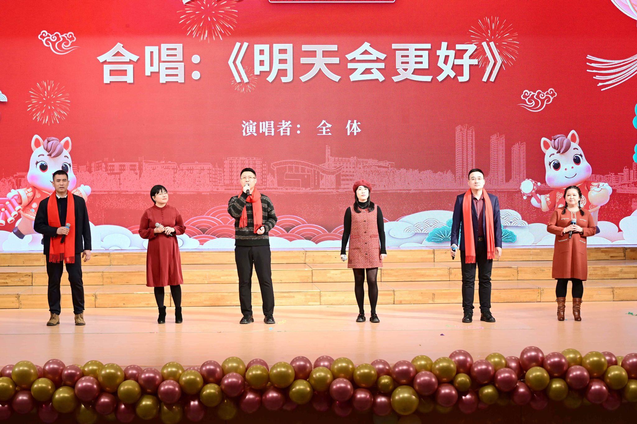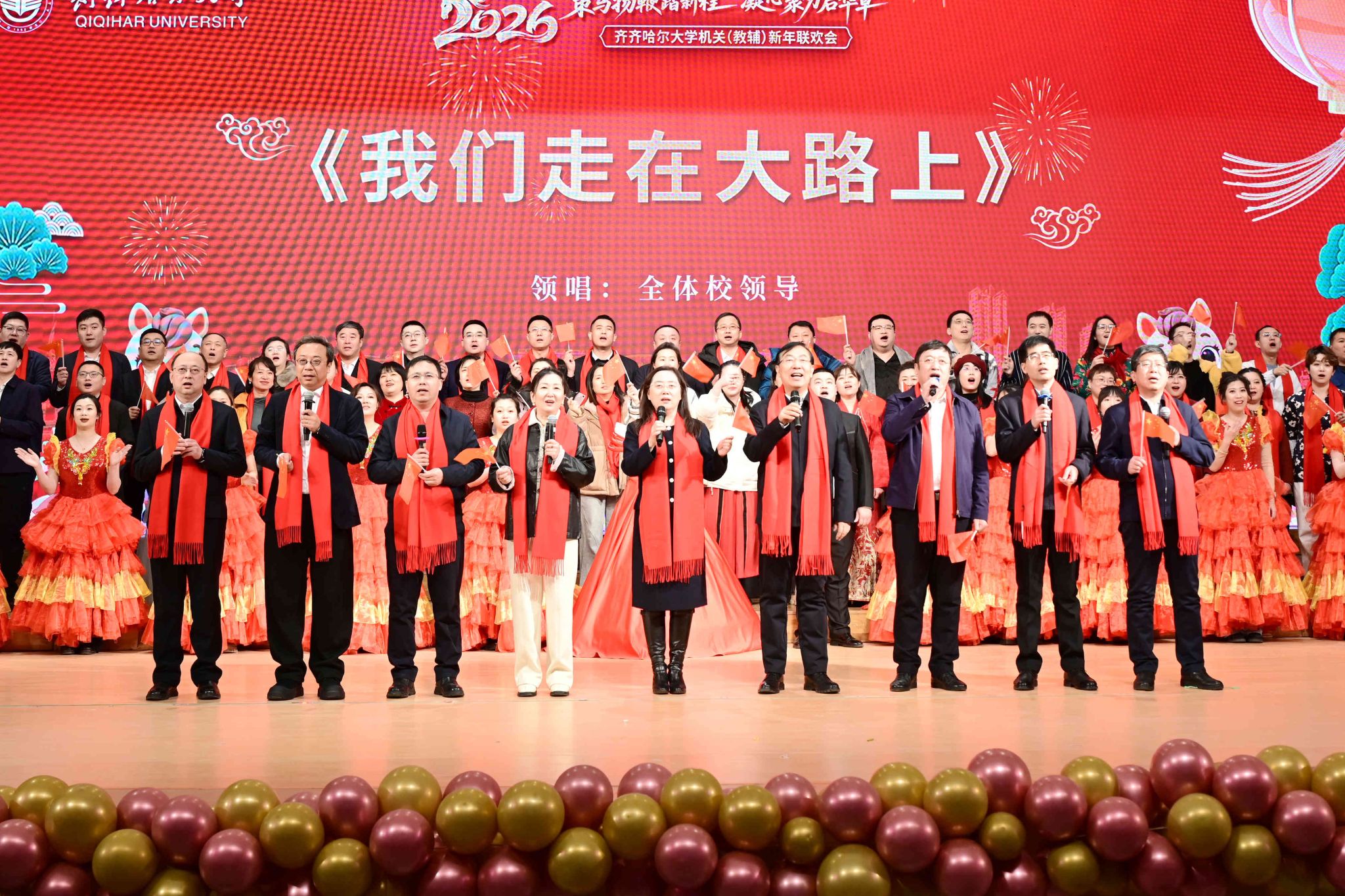 最后,由校領(lǐng)導(dǎo)領(lǐng)唱,全體演職人員和全場觀眾共同激昂高歌《我們走在大路上》,伴隨著磅礴的聲浪,2026年機(jī)關(guān)(教輔)聯(lián)歡會圓滿落下帷幕。