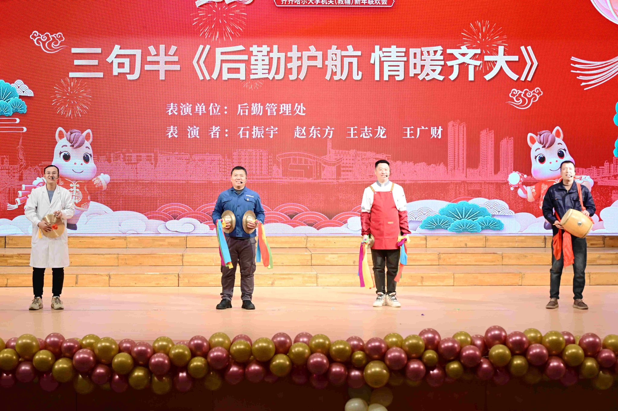 由后勤管理處帶來的三句半《后勤護(hù)航情暖齊大》,生動展現(xiàn)后勤保障隊(duì)伍默默付出、服務(wù)師生的暖心服務(wù)工作日常。