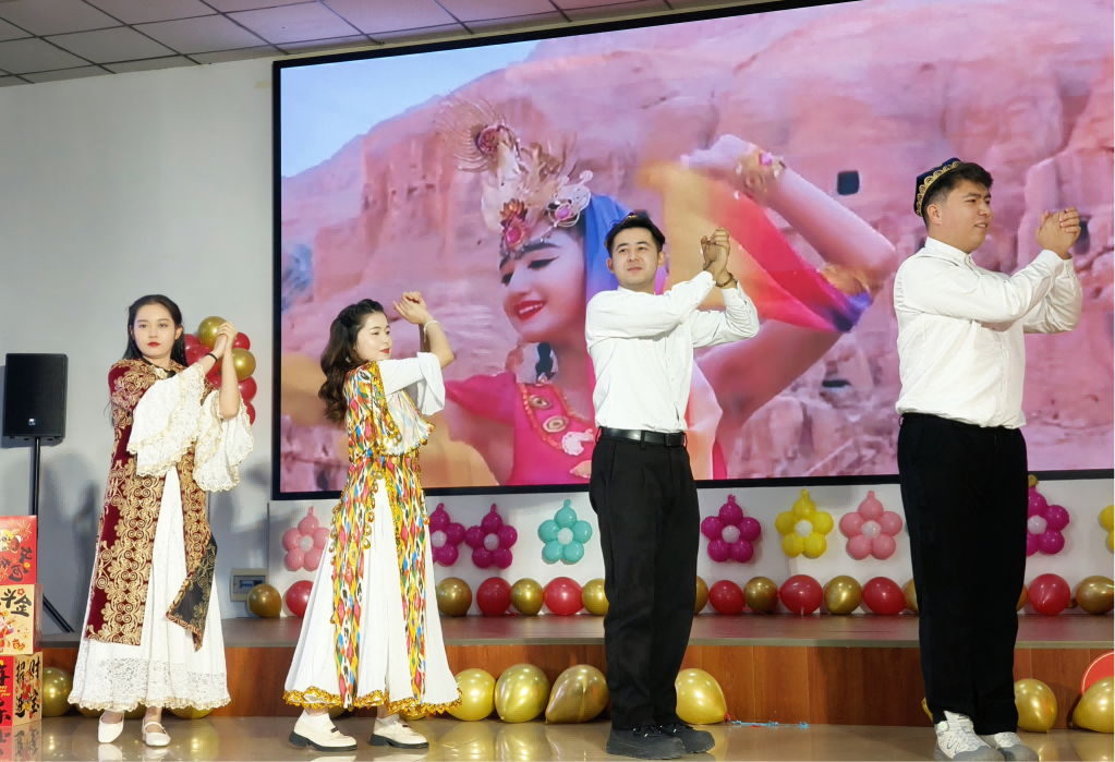 聯(lián)歡會由化學(xué)與化學(xué)工程學(xué)院輔導(dǎo)員范恩澤、少數(shù)民族輔導(dǎo)員麥迪娜·亞森、外國語學(xué)院輔導(dǎo)員李旻澤、美術(shù)與藝術(shù)設(shè)計學(xué)院輔導(dǎo)員王淼主持。