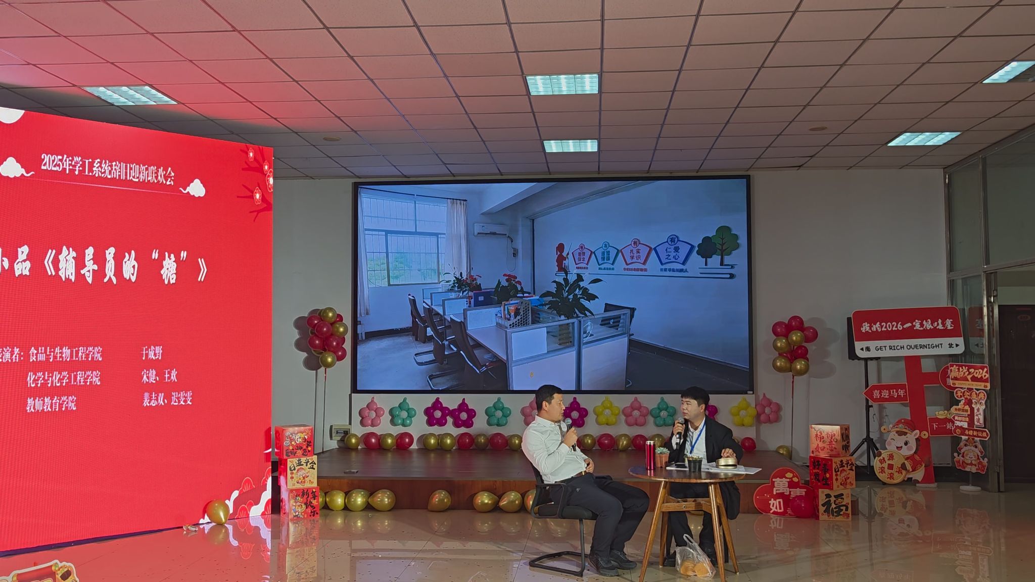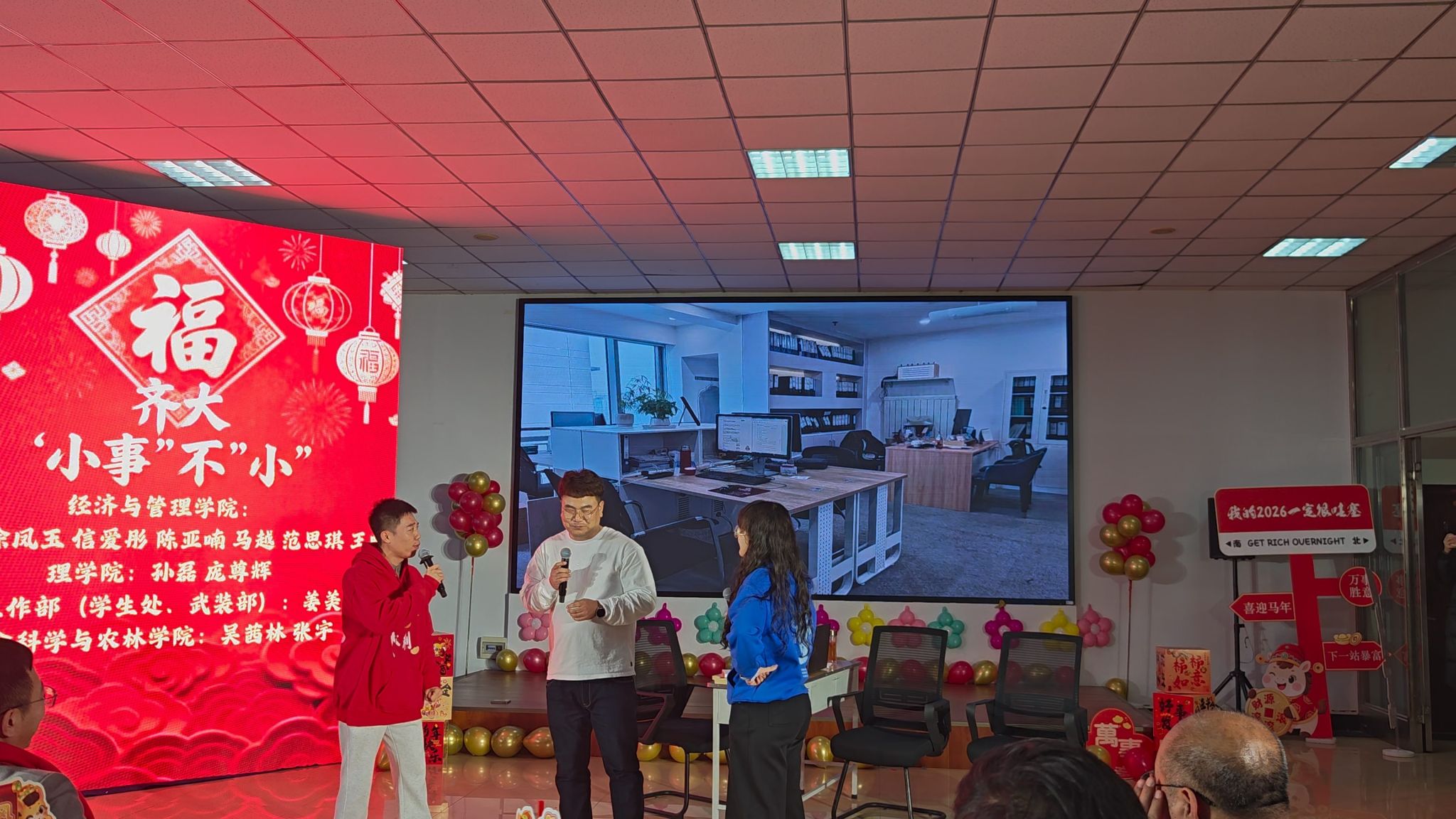金馬踏春送福至,丹心育人譜新篇。12月30日下午,學(xué)校在東區(qū)就業(yè)指導(dǎo)中心二樓舉辦“同心筑夢共赴新程”學(xué)工系統(tǒng)辭舊迎新聯(lián)歡會。校黨委書記丁宏,校長、黨委副書記郝文斌,黨委副書記張文治出席,全體輔導(dǎo)員和相關(guān)職能部門同志齊集一堂、共迎新年。