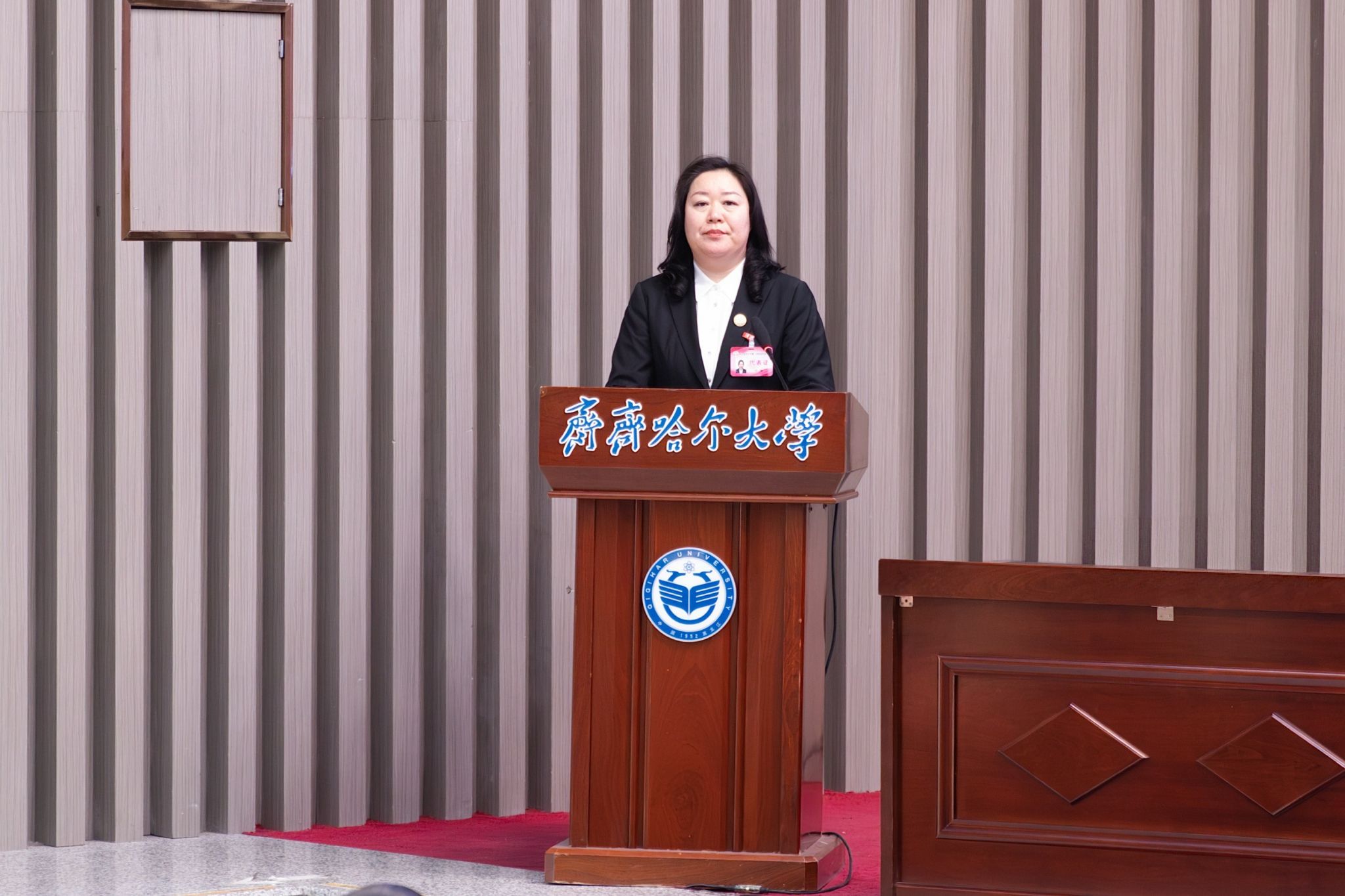 校長(zhǎng)、黨委副書記郝文斌宣讀市婦聯(lián)《關(guān)于同意成立齊齊哈爾大學(xué)婦女聯(lián)合會(huì)的批復(fù)》,標(biāo)志著齊齊哈爾大學(xué)婦女聯(lián)合會(huì)正式成立。