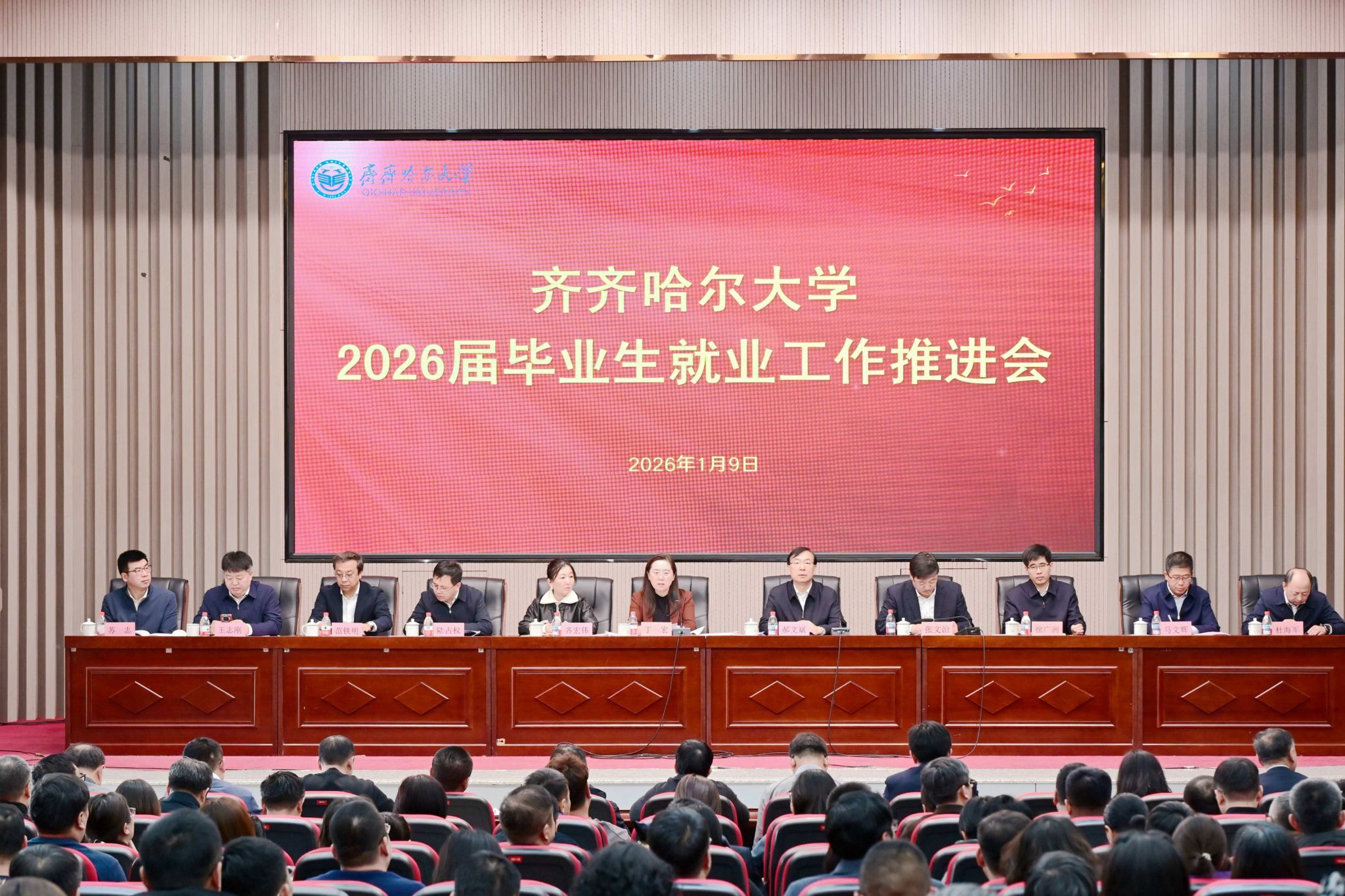 為深入學(xué)習(xí)貫徹黨的二十屆四中全會精神和習(xí)近平總書記關(guān)于就業(yè)工作的重要論述,全面落實教育部和省委省政府關(guān)于高校畢業(yè)生就業(yè)工作部署要求,促進(jìn)高質(zhì)量充分就業(yè),1月9日,學(xué)校在日新大廈四樓報告廳召開2026屆畢業(yè)生就業(yè)工作推進(jìn)會議。校黨委書記丁宏在會議上講話,會議由校長、黨委副書記郝文斌主持,黨委副書記張文治宣讀關(guān)于命名表彰2025屆畢業(yè)生就業(yè)工作先進(jìn)集體和先進(jìn)個人的決定。校領(lǐng)導(dǎo),副處級以上干部,各學(xué)院系(部、中心)主任、團委書記(學(xué)工辦主任)、2026屆畢業(yè)班輔導(dǎo)員參加會議。