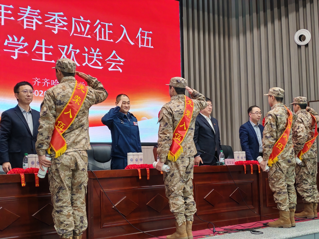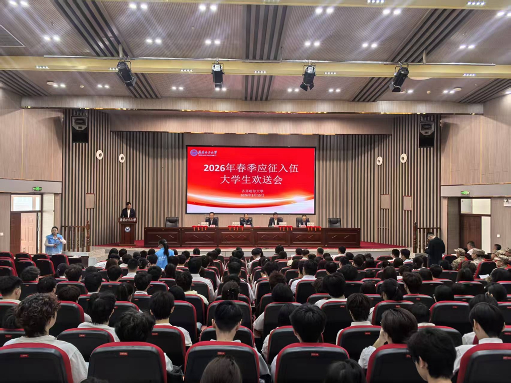 發(fā)布日期:2026-03-16 點擊量:3月15日上午,齊齊哈爾大學(xué)2026年春季應(yīng)征入伍大學(xué)生歡送會在日新大廈4樓報告廳隆重舉行。建華區(qū)人民武裝部上校政治委員欒新偉,校黨委副書記張文治,學(xué)生工作部(學(xué)生處、武裝部)相關(guān)同志、各學(xué)院黨委副書記、輔導(dǎo)員及學(xué)生代表參會。