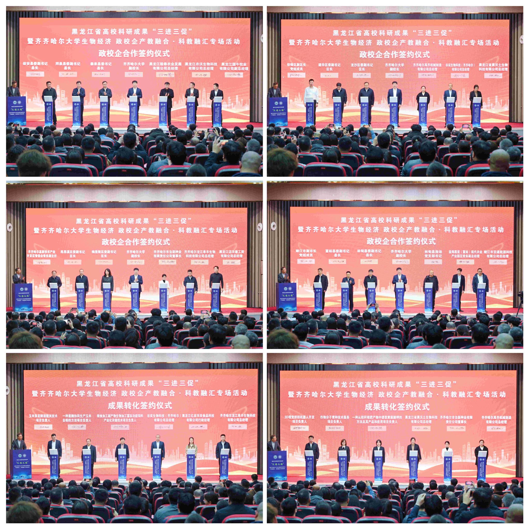 在政校企簽約環(huán)節(jié),泰來縣、拜泉縣、依安縣、龍沙區(qū)、建華區(qū)、鐵鋒區(qū)、梅里斯區(qū)、昂昂溪區(qū)、林甸縣、富??h、嫩江市以及高新技術(shù)產(chǎn)業(yè)開發(fā)區(qū),與我校及相關(guān)企業(yè)簽署了政校企戰(zhàn)略合作框架協(xié)議。各方聚焦生物經(jīng)濟(jì)領(lǐng)域,深化產(chǎn)教融合、科教融匯,持續(xù)完善政校企合作機(jī)制。