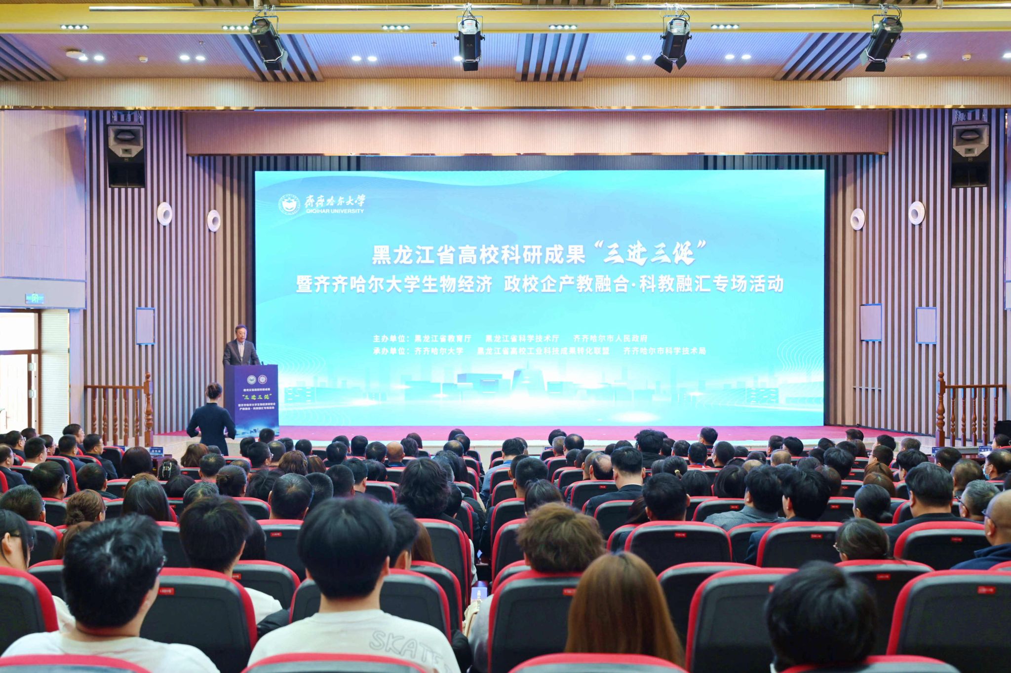 3月22日,我校在日新大廈四樓報(bào)告廳成功舉辦省高??蒲谐晒叭M(jìn)三促”暨齊齊哈爾大學(xué)生物經(jīng)濟(jì)政校企產(chǎn)教融合、科教融匯專場活動(dòng)。本次活動(dòng)是黑龍江省啟動(dòng)高?!叭M(jìn)三促”專項(xiàng)行動(dòng)以來的重要場次之一,旨在以“進(jìn)企業(yè)、進(jìn)園區(qū)、進(jìn)縣域”推動(dòng)“促轉(zhuǎn)化、促融合、促振興”,為龍江全面振興貢獻(xiàn)教育科創(chuàng)力量。