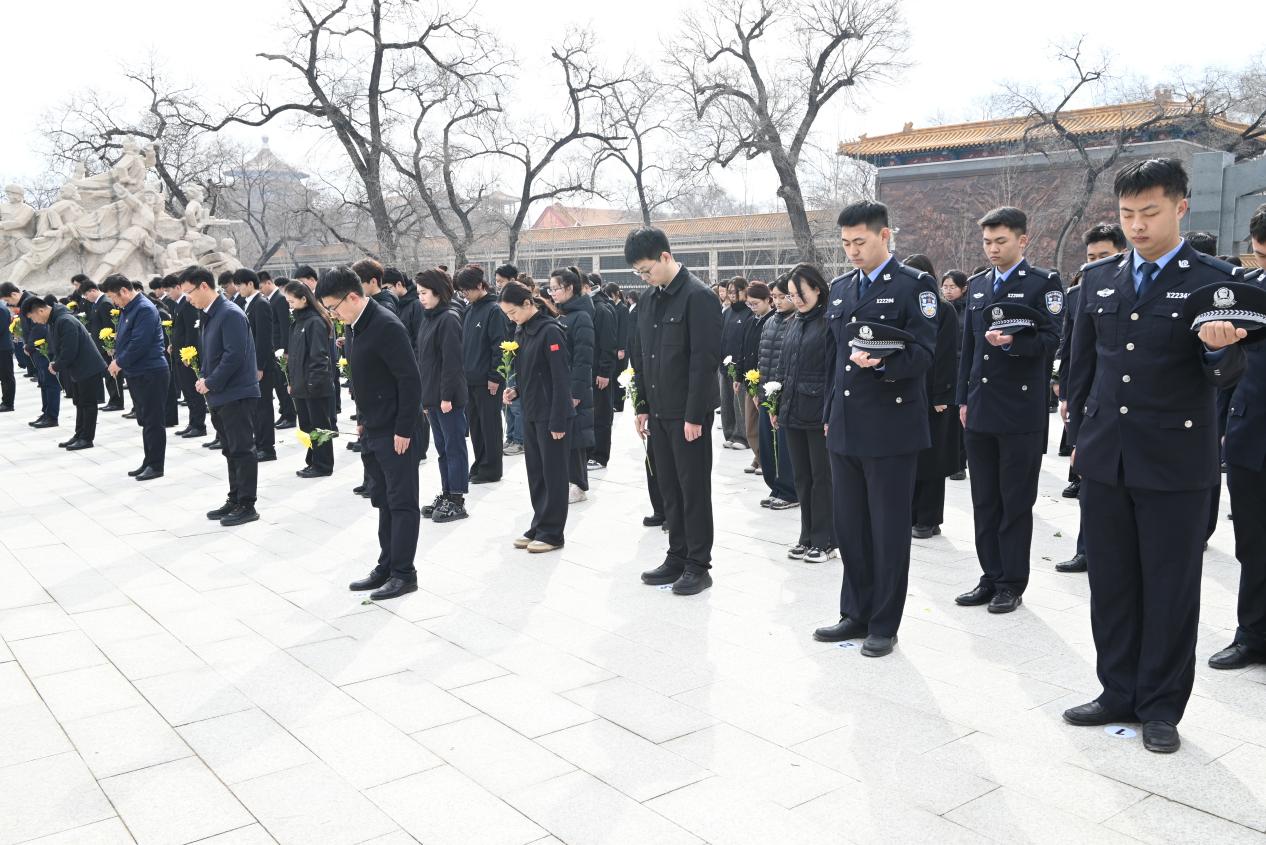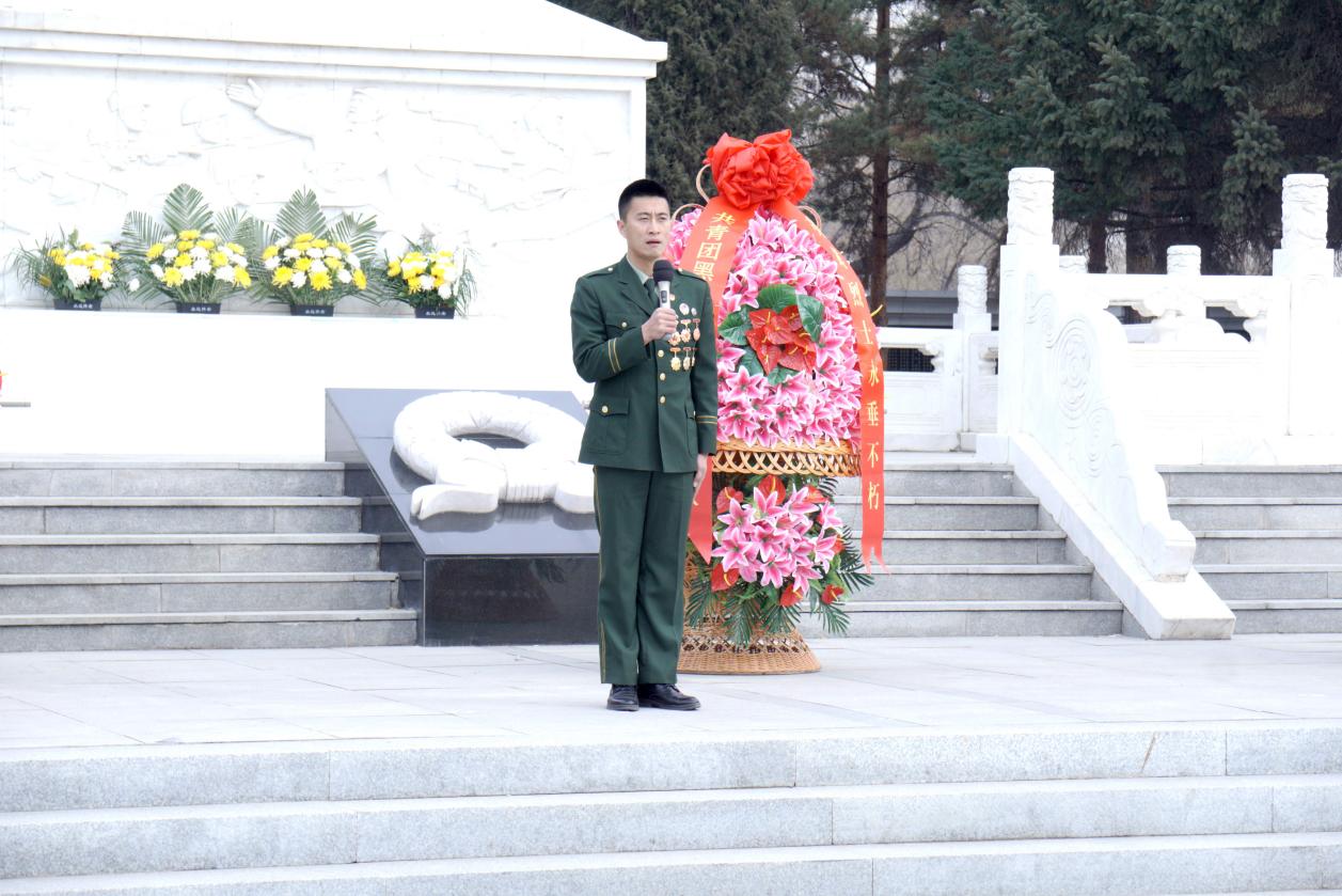 我校國(guó)旗護(hù)衛(wèi)隊(duì)向烈士紀(jì)念碑敬獻(xiàn)花籃,全體人員行注目禮,以莊重禮儀寄托哀思、告慰英魂。