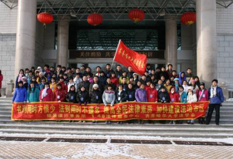 弘揚(yáng)法治精神,服務(wù)科學(xué)發(fā)展。為了貫徹黨的十七大精神,抓好“五五”普法規(guī)劃的落實(shí),2008年12月4日,在校黨委宣傳部、校團(tuán)委及法學(xué)會(huì)會(huì)長呂途副教授的領(lǐng)導(dǎo)下,齊齊哈爾大學(xué)法學(xué)會(huì)與黑龍江銘昊律師事務(wù)所以及184法律服務(wù)中心合作進(jìn)行了“12.4普法宣傳”活動(dòng),獲得了廣大市民和同學(xué)們的一致好評。