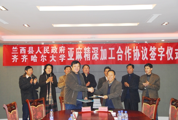 我校此次與蘭西縣就亞麻精深加工合作協(xié)議簽約,是我校貫徹《黑龍江省高等教育強(qiáng)省建設(shè)規(guī)劃》,落實(shí)高教強(qiáng)省戰(zhàn)略的重要體現(xiàn),也是我校以科技研發(fā)和智力資源積極主動(dòng)服務(wù)地方經(jīng)濟(jì)建設(shè)和社會(huì)發(fā)展的生動(dòng)寫(xiě)照。