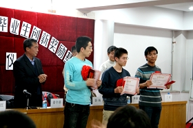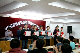 頒獎儀式上,與會領(lǐng)導和谷闖先生共同為獲獎學生頒發(fā)了獎金。自動化專業(yè)09屆畢業(yè)生王琦等九名同學分別榮獲了一二等獎及鼓勵獎。
