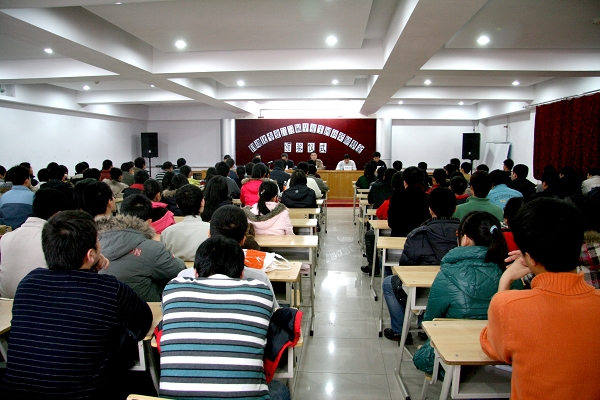 頒獎儀式后,谷闖先生為在座學生做了一次就業(yè)指導講座。他在講座中結(jié)合自身創(chuàng)業(yè)經(jīng)驗,為同學們分析了就業(yè)形勢,并指導同學們樹立正確的就業(yè)觀,調(diào)整心態(tài),積極準備,掌握正確的求職方法。