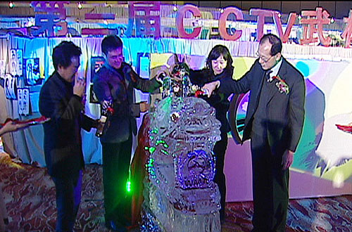 第二屆“武林大會”設計大賽評審評選啟動儀式現(xiàn)場還用一個非常震撼的冰雕龍頭作為《武林大會》的象征,現(xiàn)場領導將紅酒注入龍頭后,不僅龍頭眼睛變?yōu)榧t色而且在龍頭的口中出現(xiàn)了《武林大會》聯(lián)盟的標志,象征著《武林大會》作為中國傳統(tǒng)體育的龍頭項目將中國的民族體育品牌推向世界。