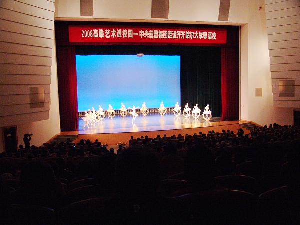 10月21日下午,中央芭蕾舞團“高雅藝術進校園”專場演出在我校音樂廳隆重拉開帷幕。本次演出共進行四場,我校及在齊的其他3所高校的5000余名師生現(xiàn)場欣賞到了國家級水平的芭蕾藝術表演。哈爾濱師范大學等我省其他高校的140余名師生也慕名前來欣賞、學習和觀摩。