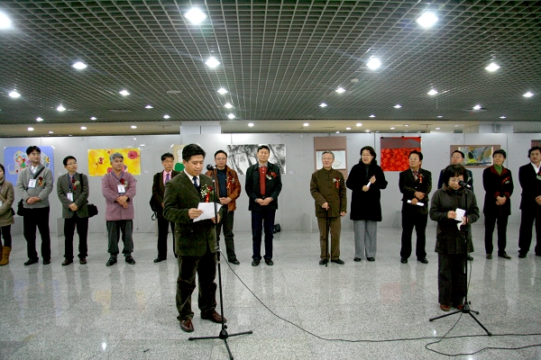 韓國(guó)朝鮮大學(xué)校美術(shù)大學(xué)美術(shù)部主任金鍾京教授、我校藝術(shù)學(xué)院宗明明院長(zhǎng)分別致辭。出席開幕式的領(lǐng)導(dǎo)和嘉賓共同為展覽開幕剪彩。