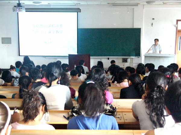 張玉民教授在講座中主要介紹了我國基礎(chǔ)教育課程改革的背景,解讀了基礎(chǔ)教育課程改革的具體目標(biāo),介紹了新課程實(shí)施帶來的課堂教學(xué)新變化。張教授還結(jié)合新課程實(shí)際課堂教學(xué)的案例,介紹了如何落實(shí)新課程的三位課程目標(biāo),實(shí)現(xiàn)學(xué)生主動(dòng)探究合作的學(xué)習(xí),以及建構(gòu)主義學(xué)習(xí)理論指導(dǎo)下的新的課堂教學(xué)結(jié)構(gòu)。