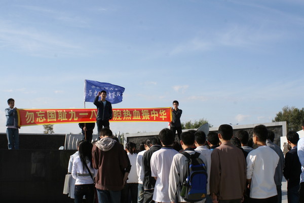 歷史071班李春龍同學(xué)代表歷史系全體同學(xué)宣誓,表示要“永遠記住這段刻骨銘心的歷史,以實際行動振興中華!”充分表達了當(dāng)代大學(xué)生不忘國恥、發(fā)奮圖強、振興中華的決心。他慷慨激昂的演講,深深地感染了在場的每一個人,最后,歷史系同學(xué)們齊唱國歌,向“九·一八”罹難同胞默哀,向奮起抗爭的抗戰(zhàn)英雄們致敬。人文學(xué)院團委書記袁冰巖表示:歷史系2006、2007級同學(xué)以紀念“九·一八“活動為契機,共同來到和平廣場,回顧歷史,緬懷先烈,抒發(fā)愛國之情,樹立報國之志,寓教育于活動之中,收到了很好的效果。